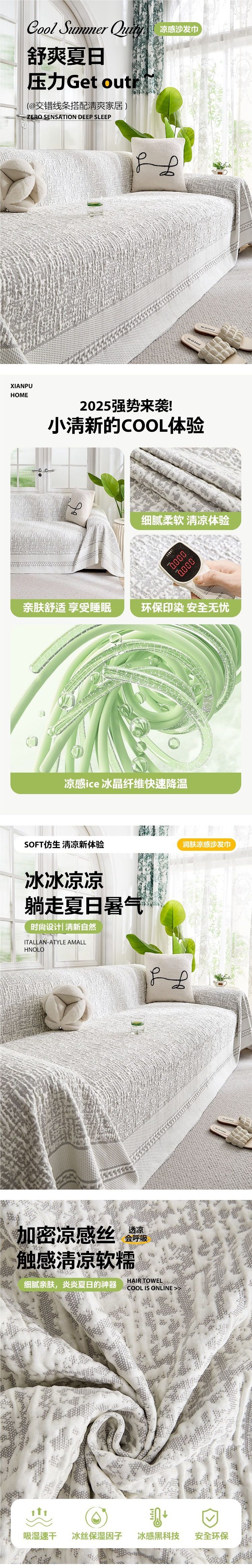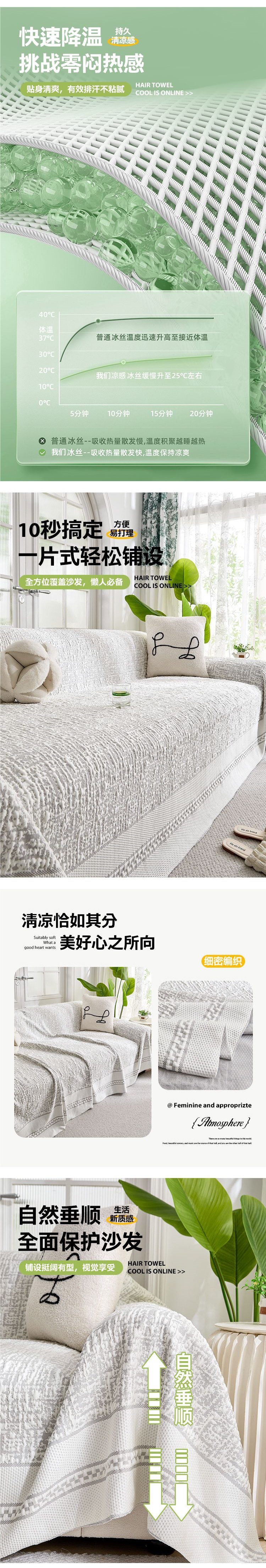 Summer Cool Ice Silk Sofa Cover Cloth 2025 New Summer Cover Anti-Cat Scratch Anti-Slip Sofa Cushion