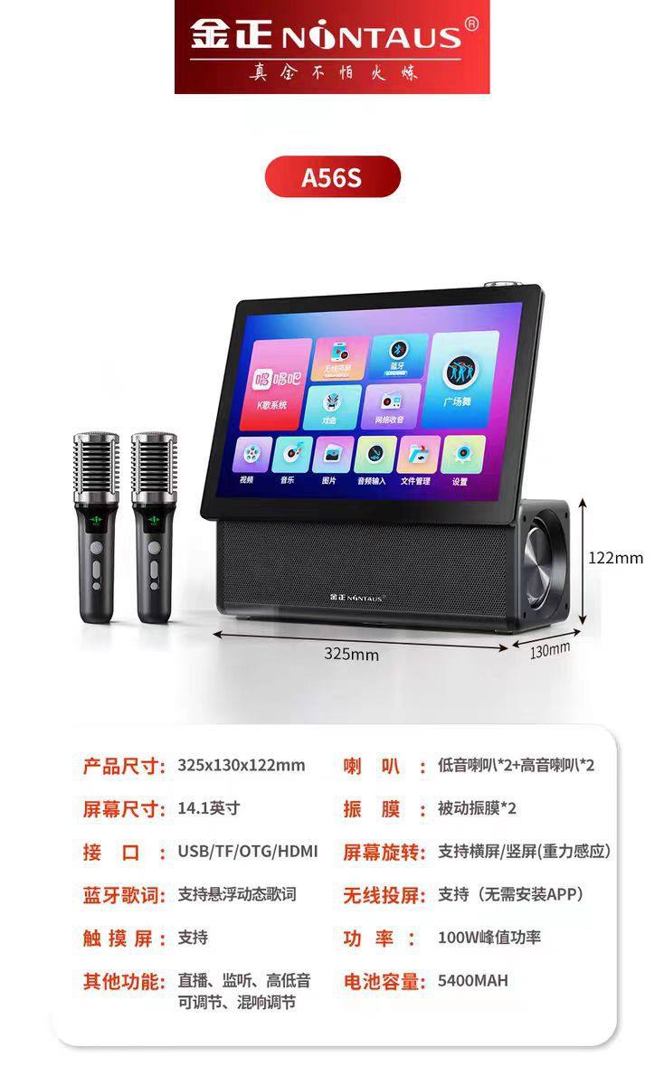 Jinzheng A56Pro Portable Network-Connected 15inch Video Audio Player Supports Wifi Wireless Mirroring of Mobile Phone Screen, Screen Can Be Rotated