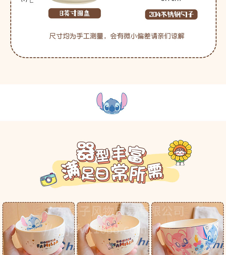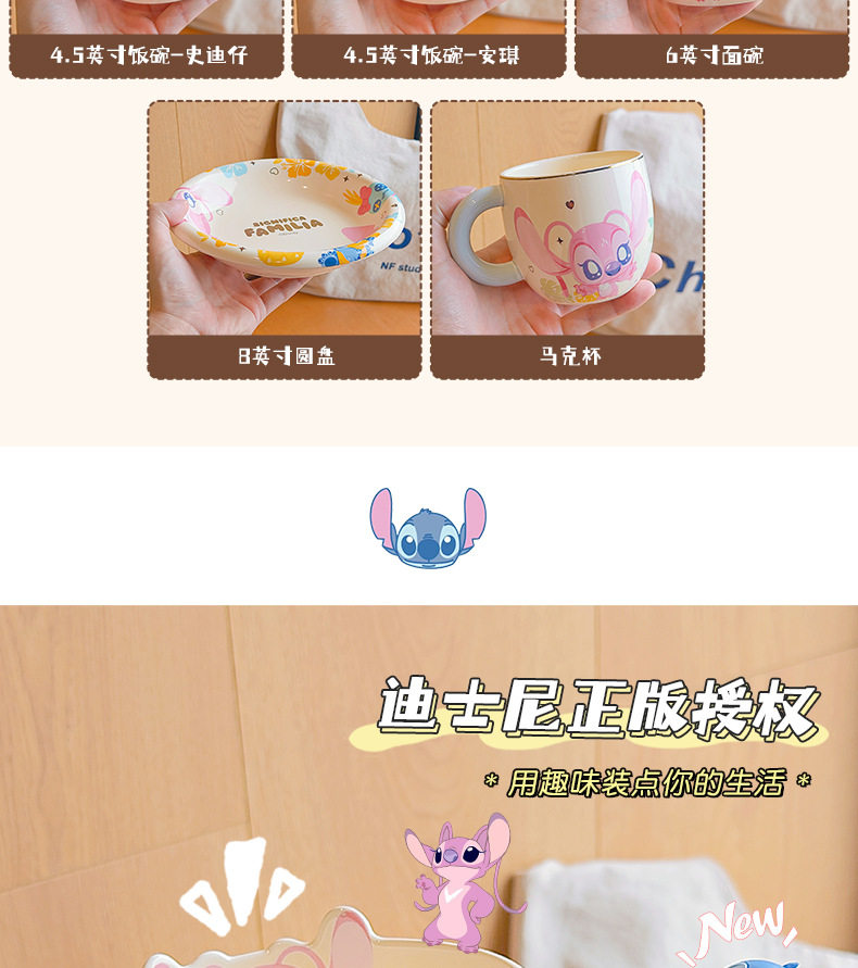 | Color | 4.5inch rice bowl-[stitch],4.5inch rice bowl-[angel],Stitch 6inch noodle bowl,Stitch 8inch disc,Stitch mug |