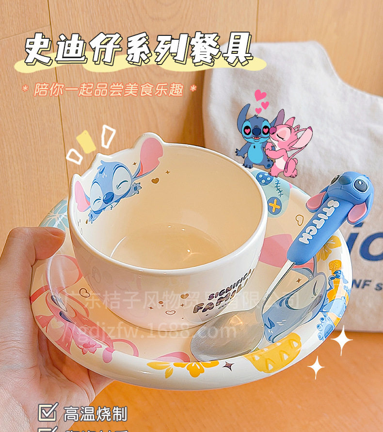 Stitch Tableware and Dishware Set Household Cute Rice Bowl 2025 New High-Looking Ceramic Bowls and Plates for One Person
