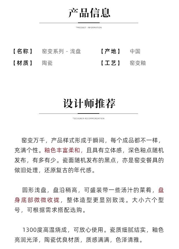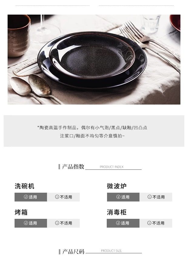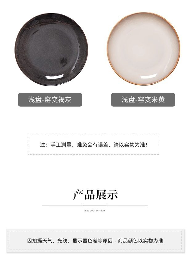 | Color | 6.5inch shallow tray-kiln browned gray,6.5inch shallow tray-kiln turns red,6.5inch shallow plate-kiln transformed cat’s eye blue,6.5inch shallow plate-bangkok brown,7inch shallow tray-kiln browned gray,7inch shallow tray-kiln turns red,7inch shallow plate-kiln transformed cat’s eye blue,7inch shallow plate-bangkok brown,8inch shallow tray-kiln browned gray,8inch shallow tray-kiln turns red,8inch shallow plate-kiln transformed cat’s eye blue,8inch shallow plate-bangkok brown,9inch shallow tray-kiln browned gray,9inch shallow tray-kiln turns red,9inch shallow plate-kiln transformed cat’s eye blue,9inch shallow plate-bangkok brown,10inch shallow tray-kiln browned gray,10inch shallow tray-kiln turns red,10inch shallow plate-kiln transformed cat’s eye blue,10inch shallow plate-bangkok brown,12inch shallow tray-kiln browned gray,12inch shallow tray-kiln turns red,12inch shallow plate-kiln transformed cat’s eye blue,12inch shallow plate-bangkok brown |