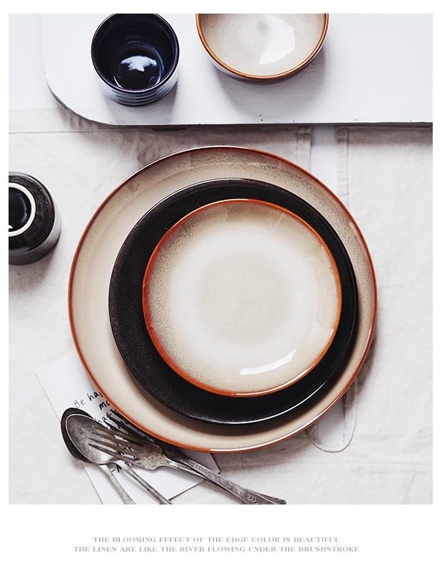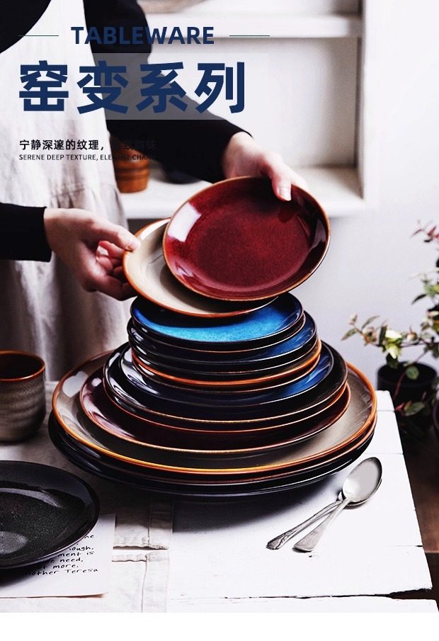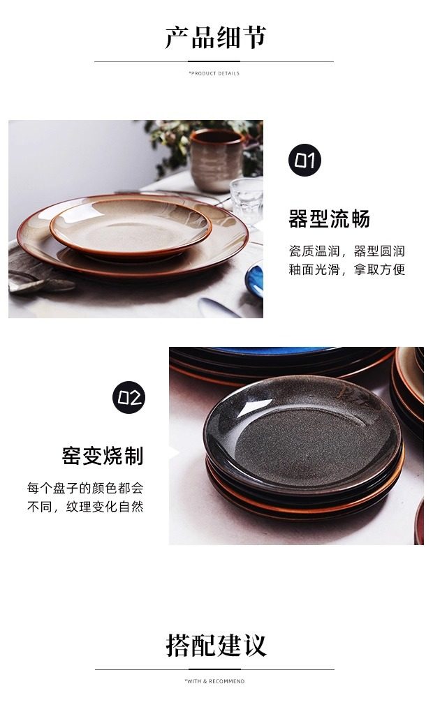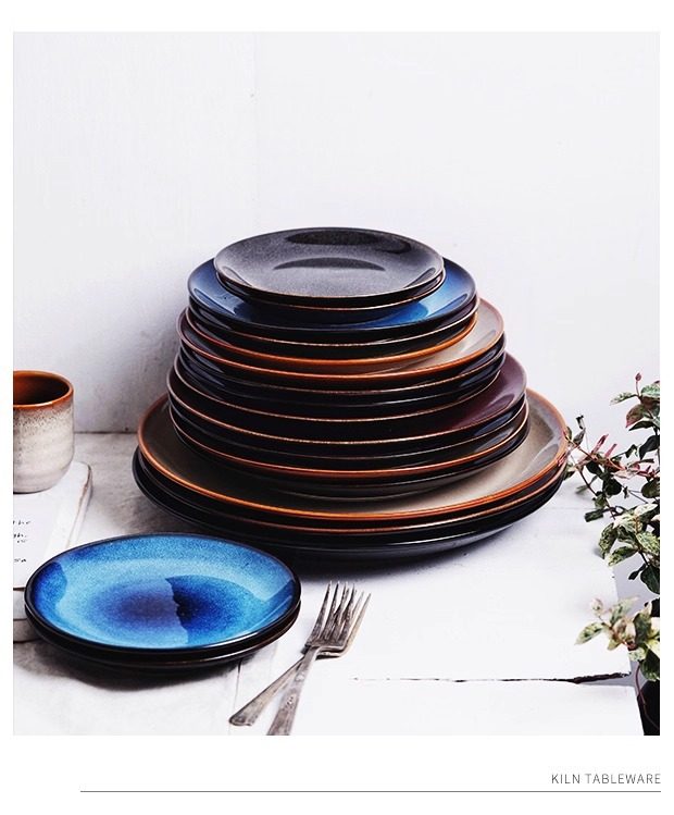 Cross-Border Retro Creative Kiln-Turned Ceramic Salad Plate Round Shallow Plate Flat Plate Hotel Restaurant Western Steak Plate Home