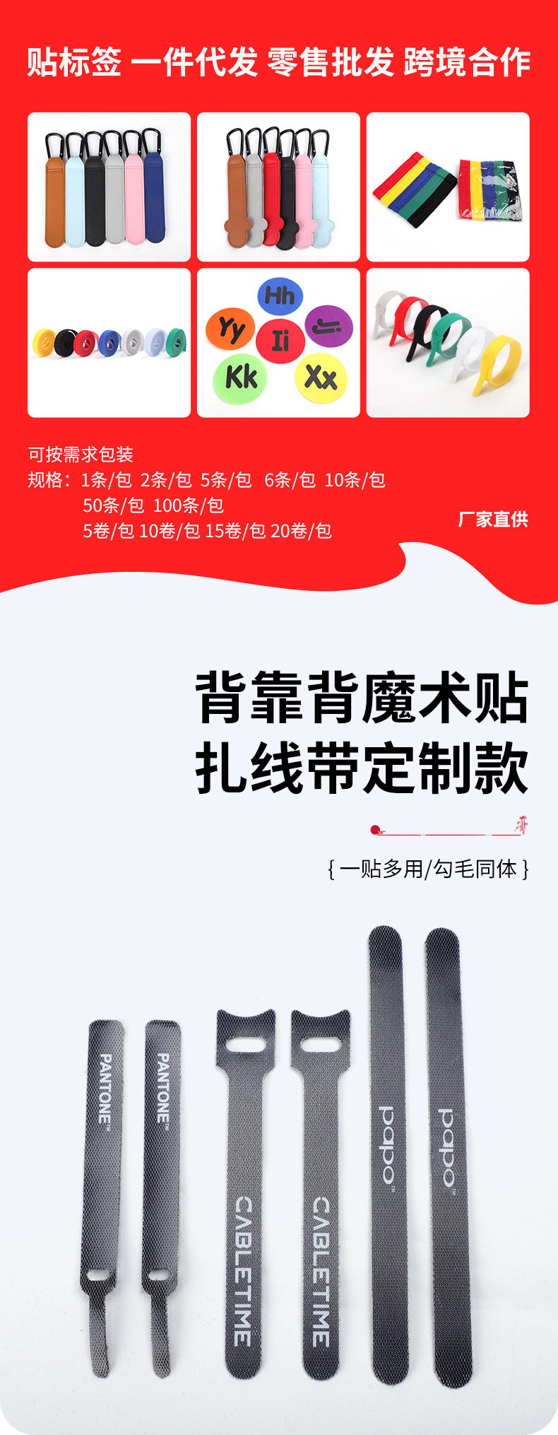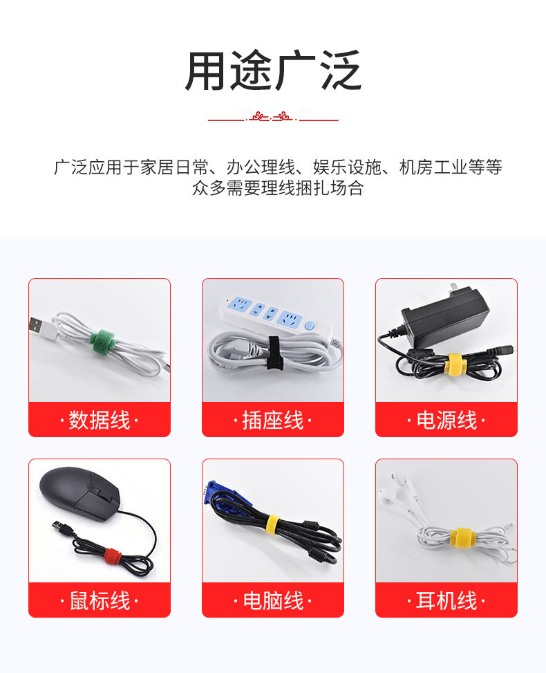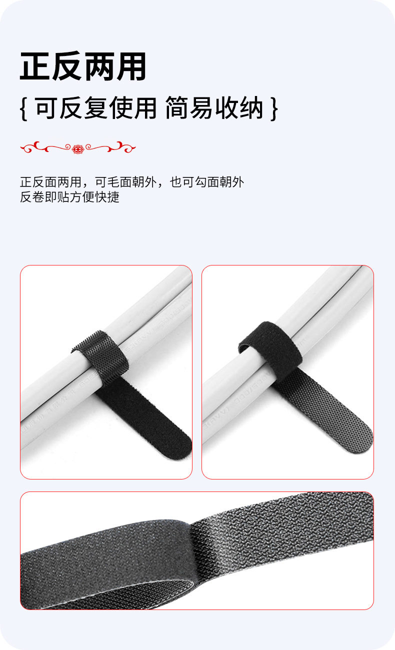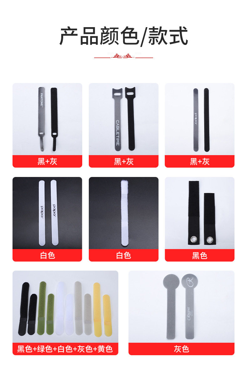 Back-To-Back Velcro Straps, Nylon Self-Adhesive Straps, Storage Straps, Data Cable Straps, Power Cord Management Straps, Customizable