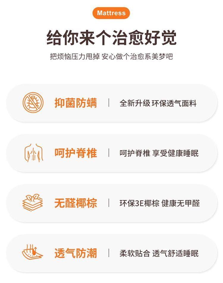 | Color | Harder style [6cm thick] ecological cotton + coconut palm,Harder style [8cm thick] ecological cotton + coconut palm,Harder style [10cm thick] ecological cotton + coconut palm,Soft style [8cm thick] coconut palm + 2cm latex,Soft style [10cm thick] coconut palm + 2cm latex,Moderate style [7cm thick] coconut palm + 1cm latex,Moderate style [9cm thick] coconut palm + 1cm latex,Moderate style [11cm thick] coconut palm + 1cm latex |