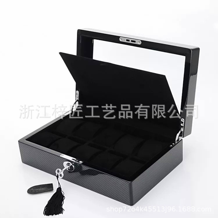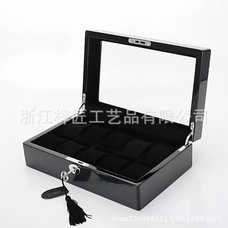 Piano Paint Solid Wood Jewelry Box Wooden Storage Box Earrings Ring Jewelry High-End Jewelry Carbon Fiber Watch Box