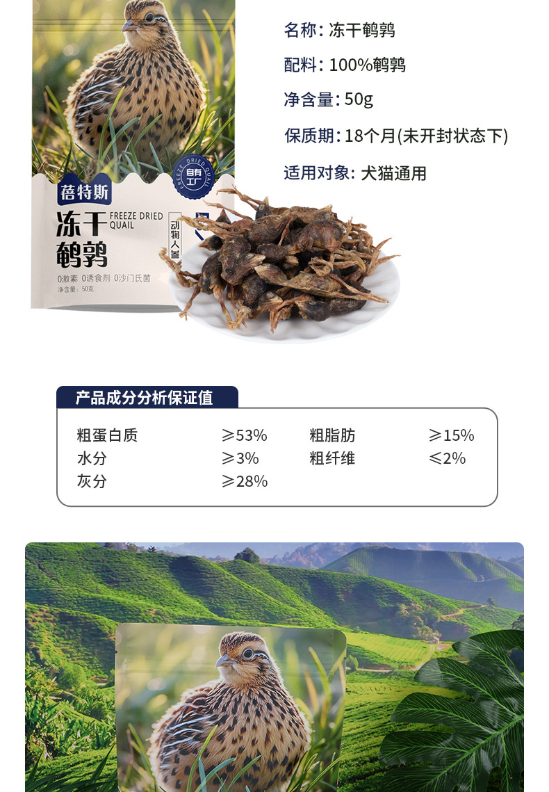 | Product code | Freeze-dried quail |