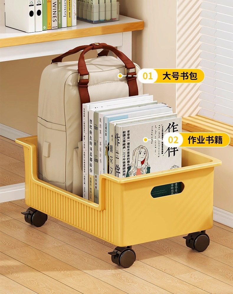 School Bag Storage Rack Mobile Trolley Storage Rack Artifact Storage Basket under the Table Wheeled School Bag Cabinet Toy Storage Box