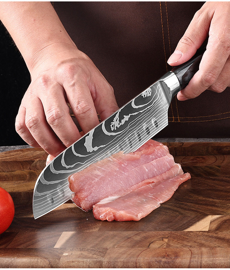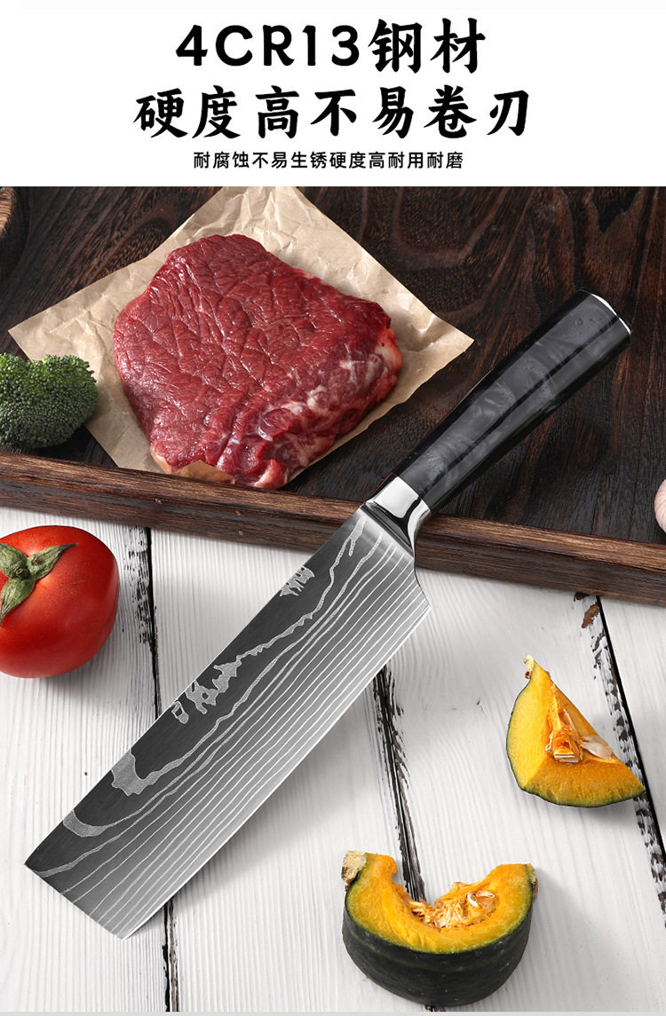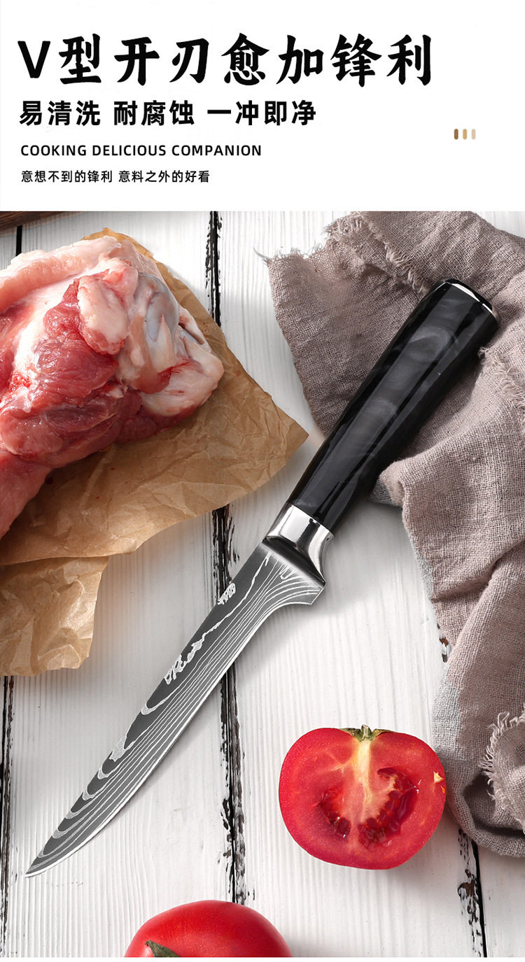 Amazon Cross-Border Best-Selling Chef's Knife Household Kitchen Knife Japanese Stainless Steel Sharp Damascus Pattern Western Knife