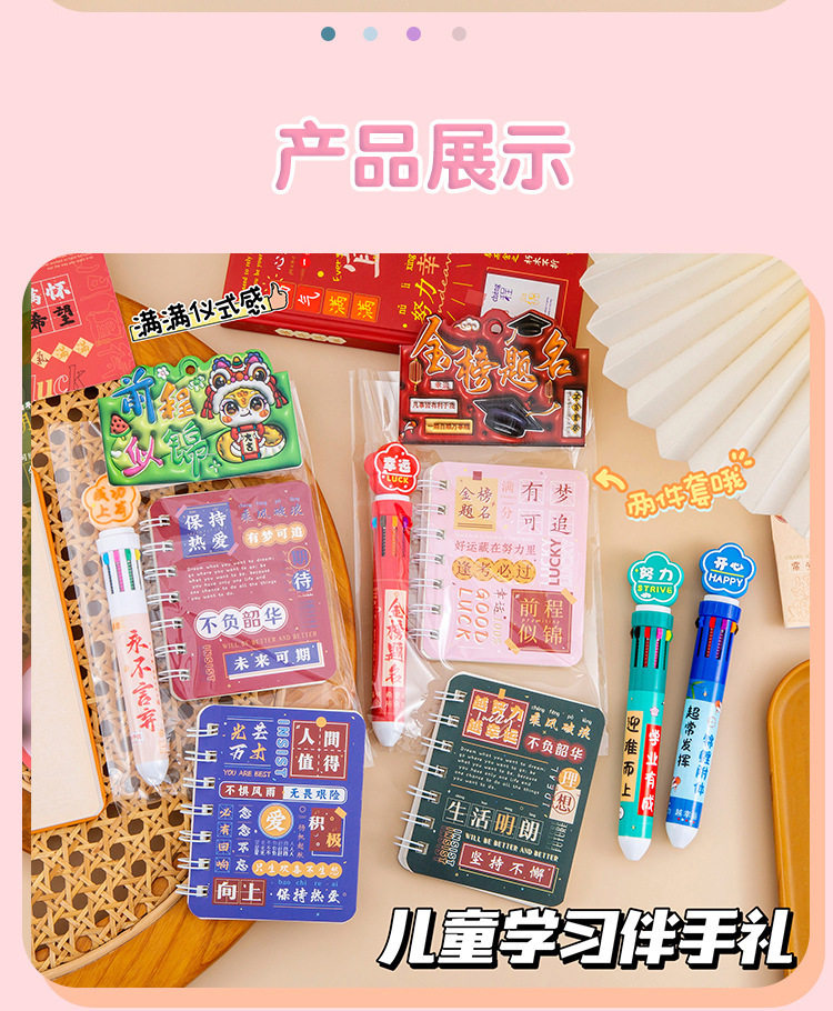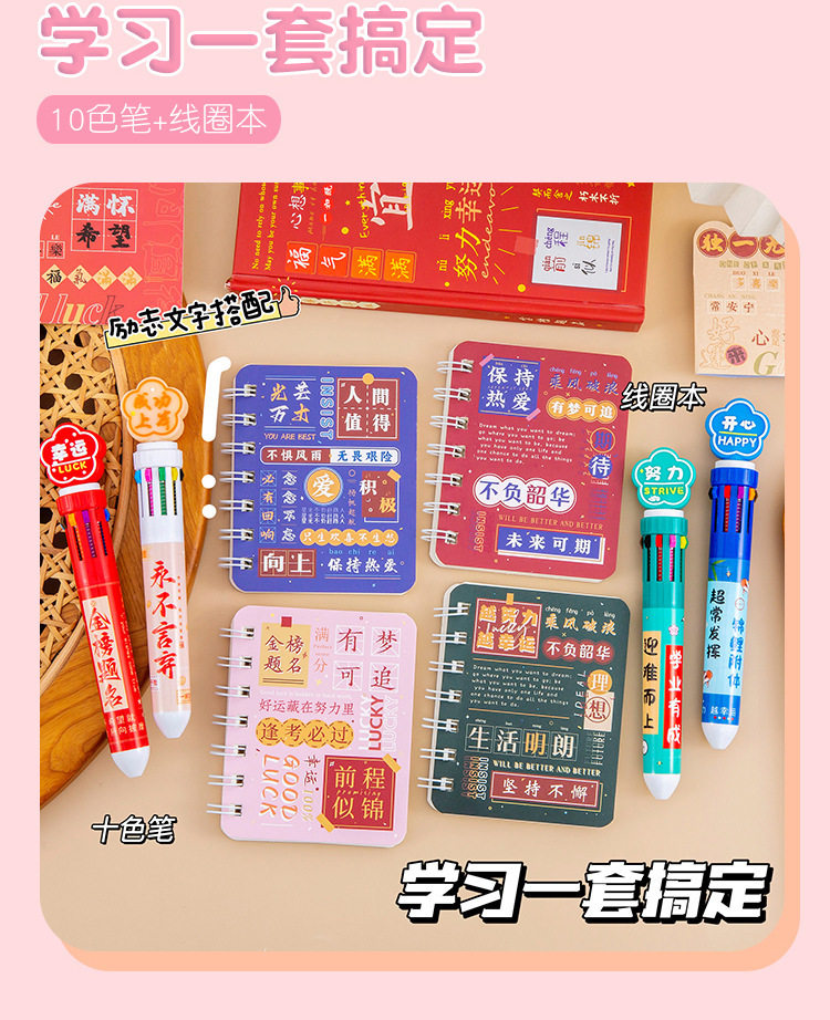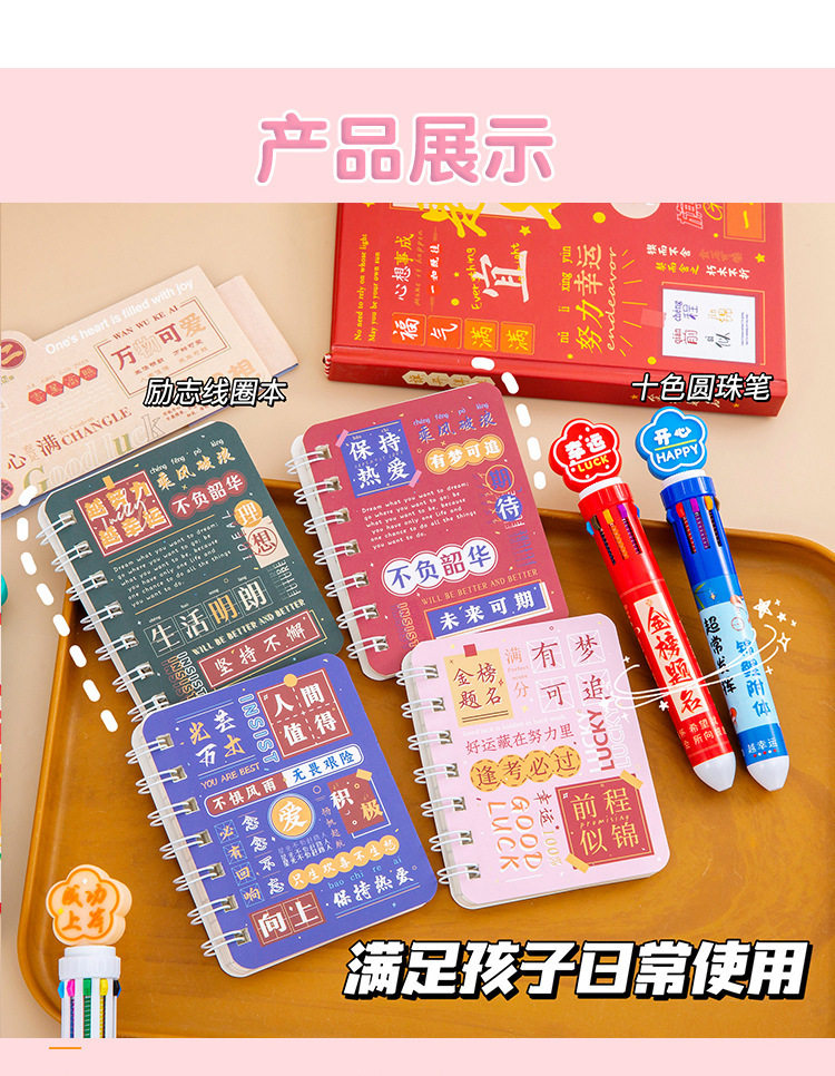 Specification A bright future [blind box pen + notebook + corner clip],Happy holidays [blind box pen + notebook + corner clip],My life is up to me, not up to heaven [blind box pen + notebook + corner clip],The future is promising [blind box pen + notebook + corner clip],Riding the wind and waves [blind box pen + notebook + corner clip],Gold list title [blind box pen + notebook + corner clip],Gold list title [book + ten color ballpoint pen],A bright future [book + ten-color ballpoint pen],Happy holidays [book + ten color ballpoint pen],Riding the wind and waves [book + ten-color ballpoint pen]