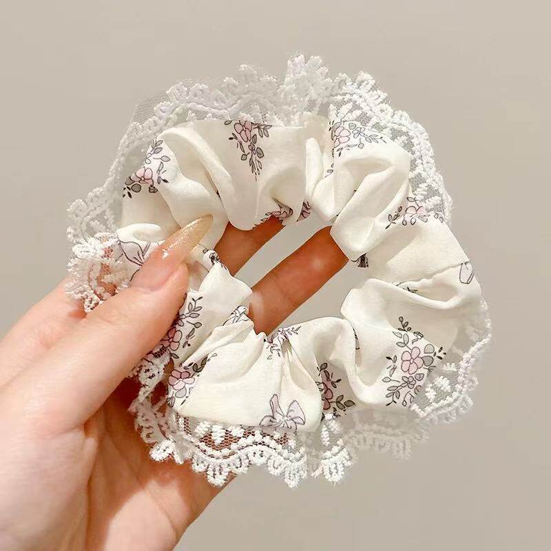 Fresh and Simple Lace Bow Floral Hair Tie 2025 New Elastic Hair Accessory Bun Hair Rope Hair Ornament