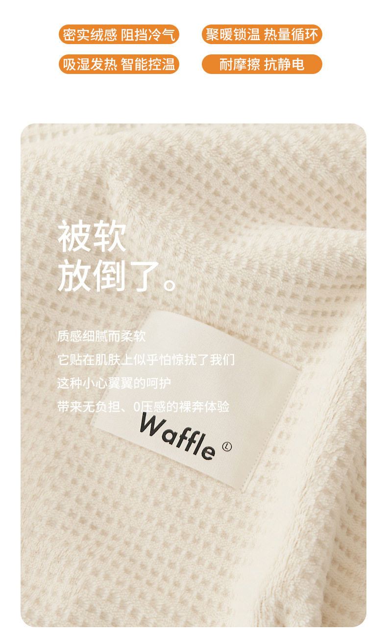 | Size Specifications | Children's blanket-70*100cm [class a maternal and infant grade waffle fabric],Nap blanket-100*150cm [class a maternal and infant grade waffle fabric],Single blanket-120*200cm [class a maternal and infant grade waffle fabric],Single blanket-150*200cm [class a maternal and infant grade waffle fabric],Double blanket-200*230cm [class a maternal and infant grade waffle fabric] |