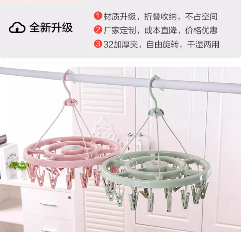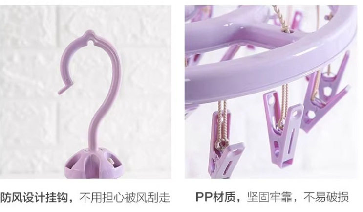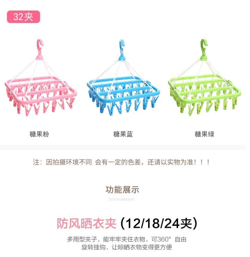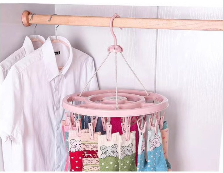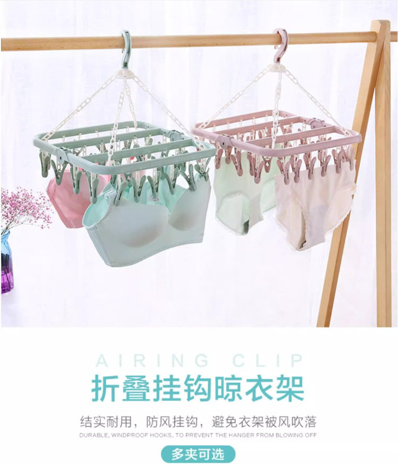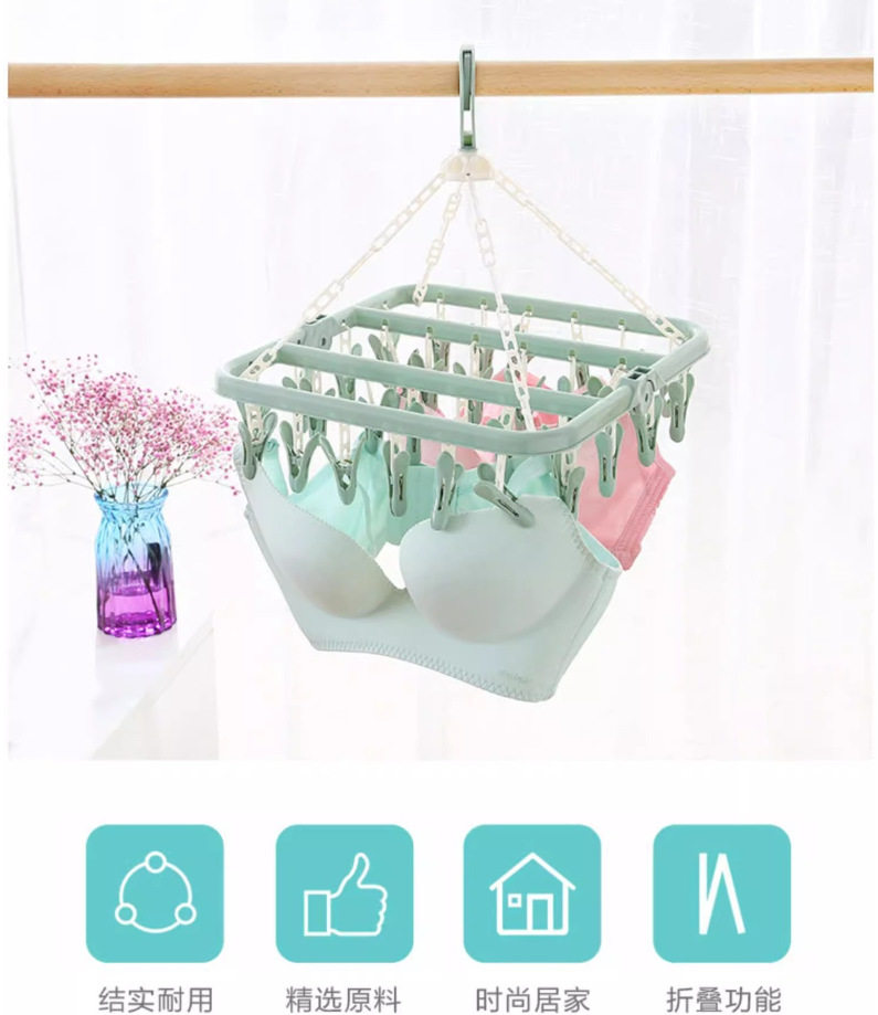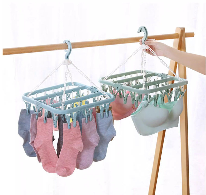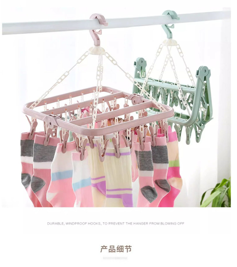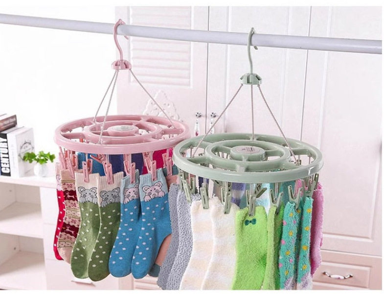 Thickened Clothes Drying Rack for Student Dormitory with Multiple Clips for Drying Clothes and Socks, Multifunctional Windproof Sock Rack with Hooks