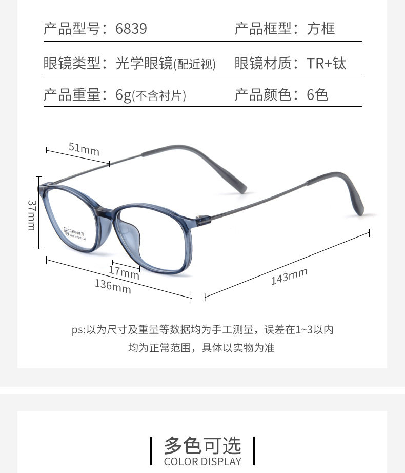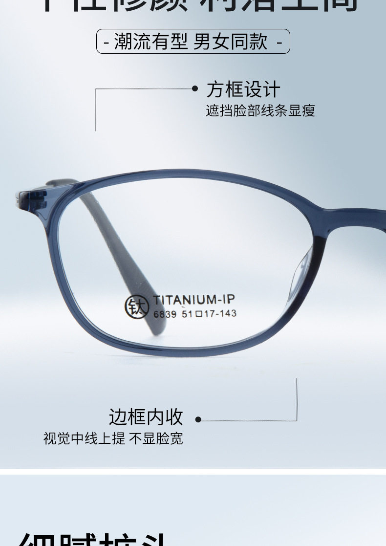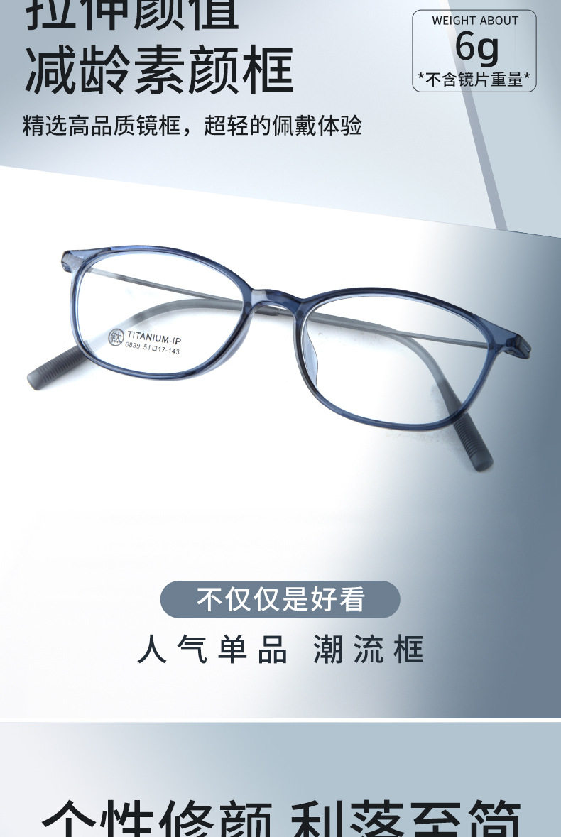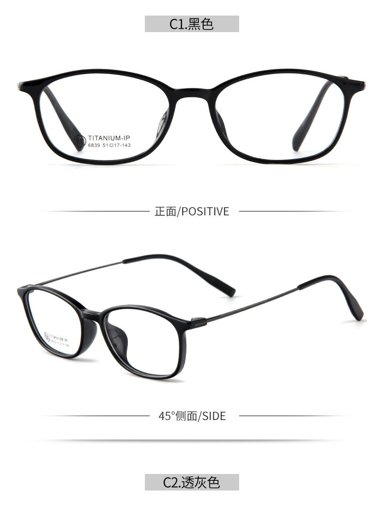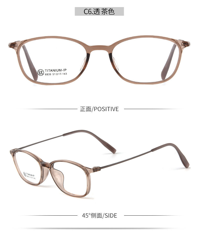 6839 Tr Frame Slingshot Titanium Leg Glasses Square Frame Fashion Glasses Frame Korean Version Trendy Unisex Prescription Glasses Frame