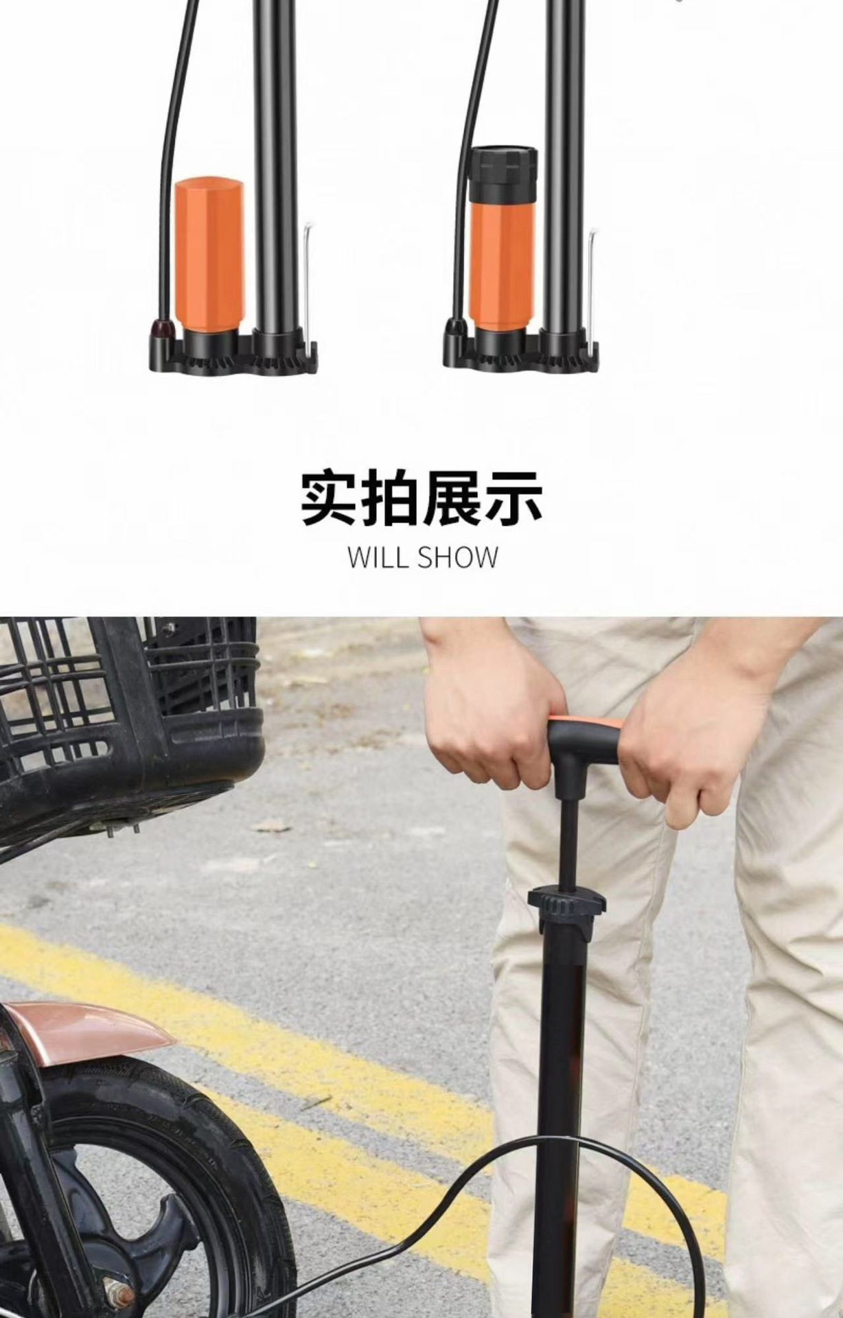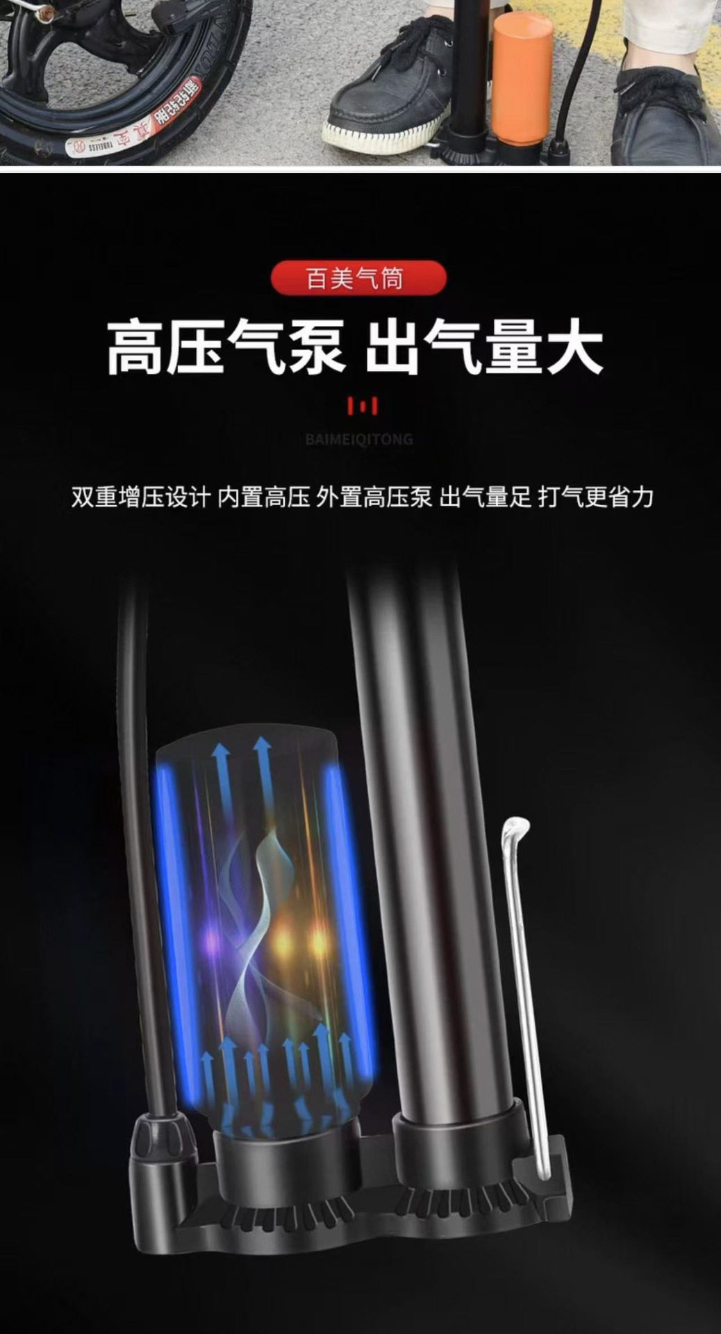 New High-Pressure Pump Portable Bicycle Pump with Air Pressure Gauge Manual Floor-Standing Universal Pump