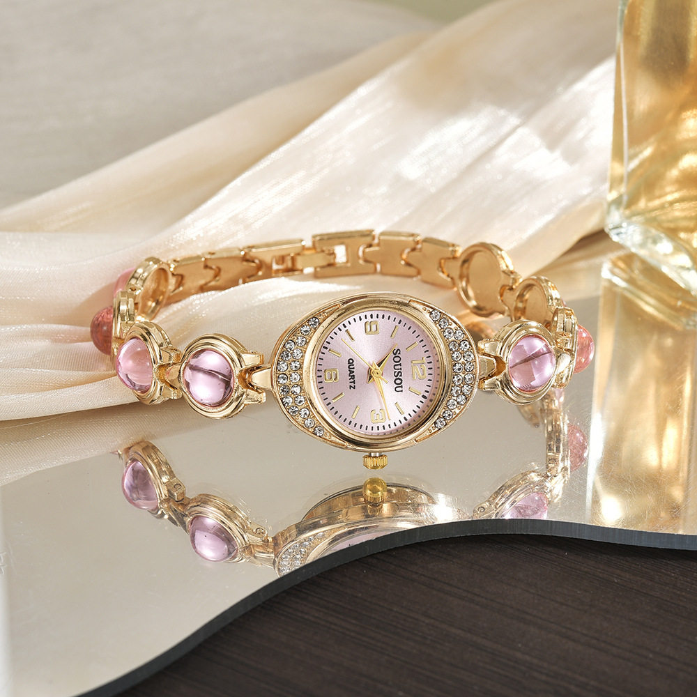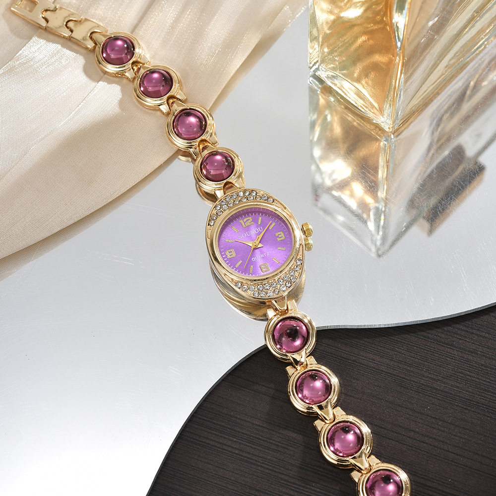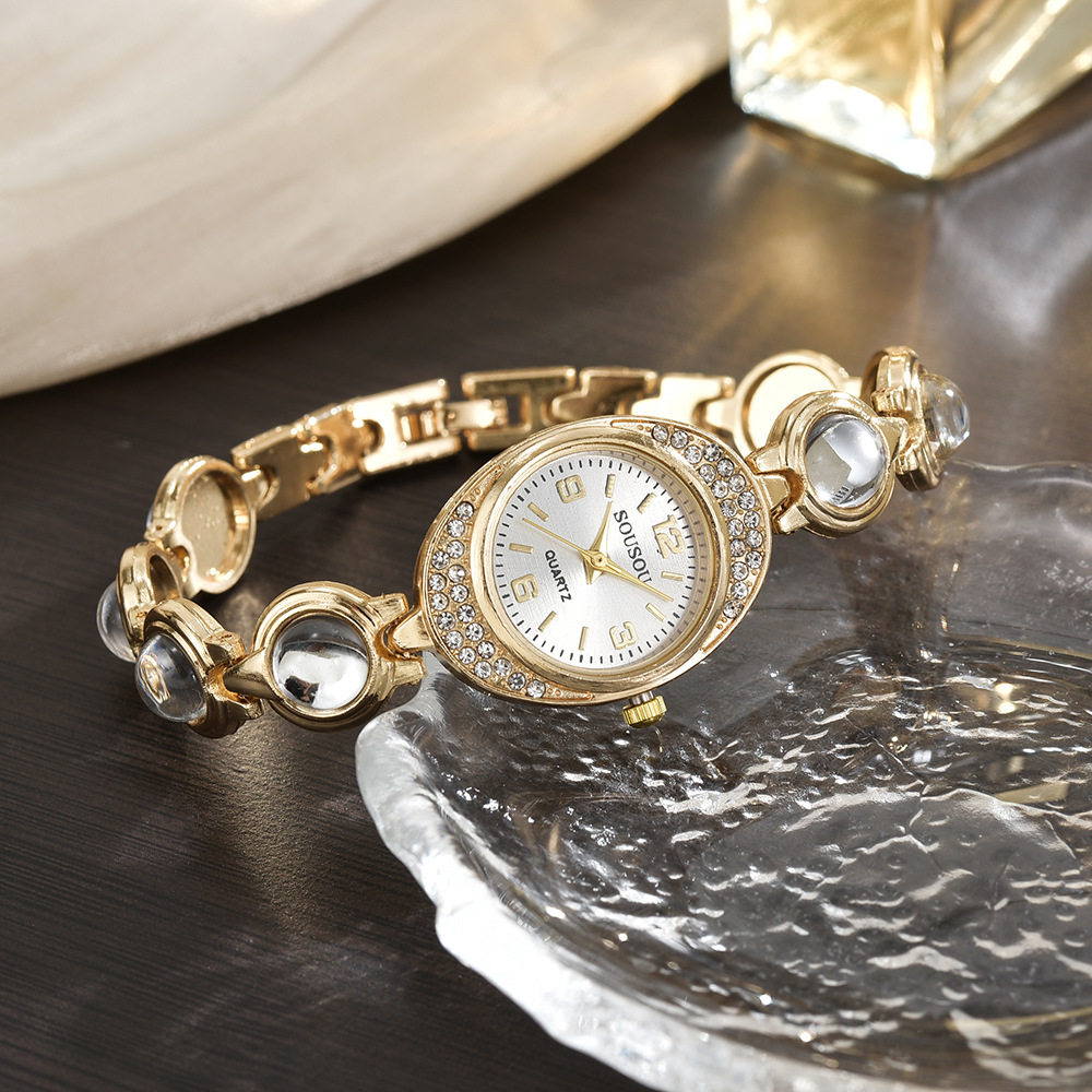 New High-Looking Colorful Diamond-Encrusted Bracelet Fashion Watch for Women with Small Dial and Small Fragrance Style Full Diamond Oval Watch