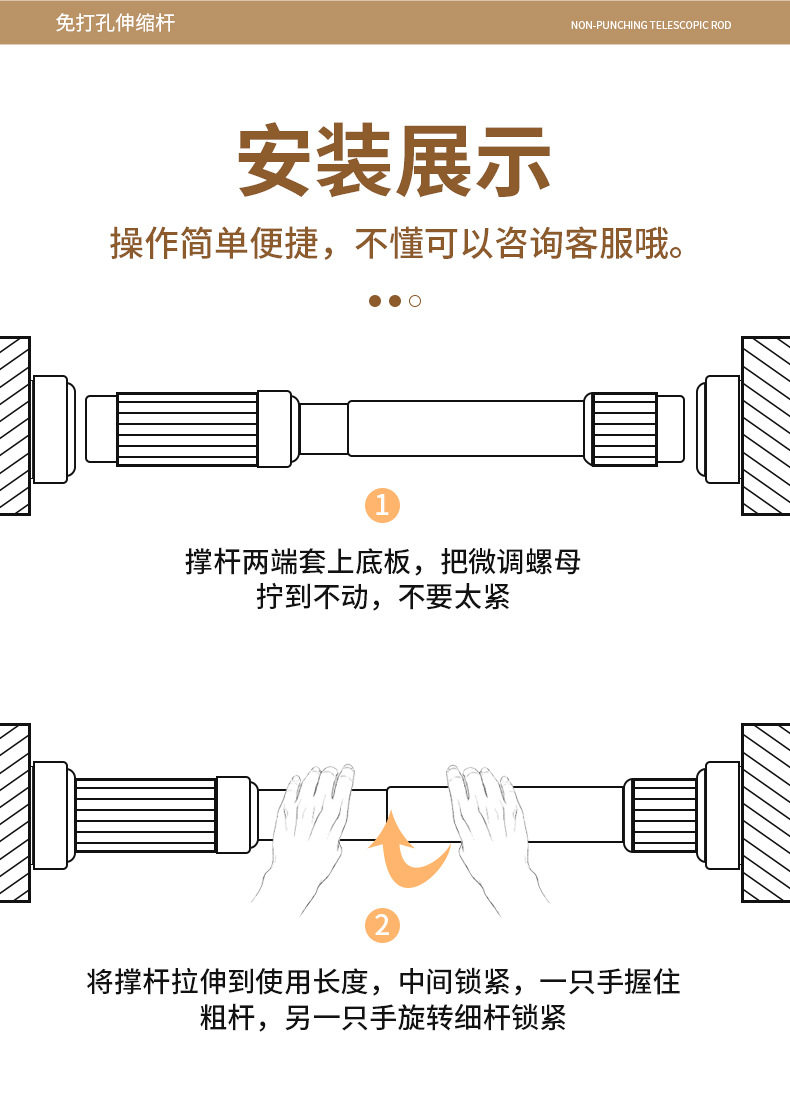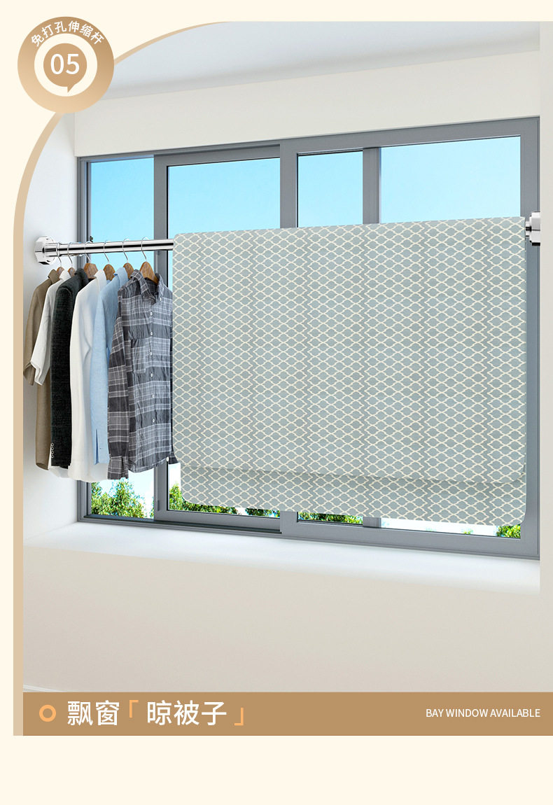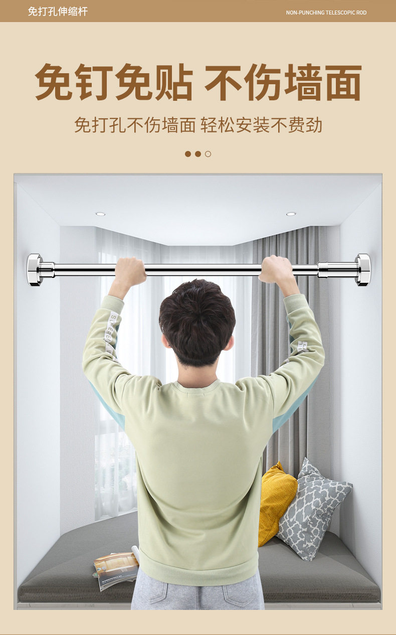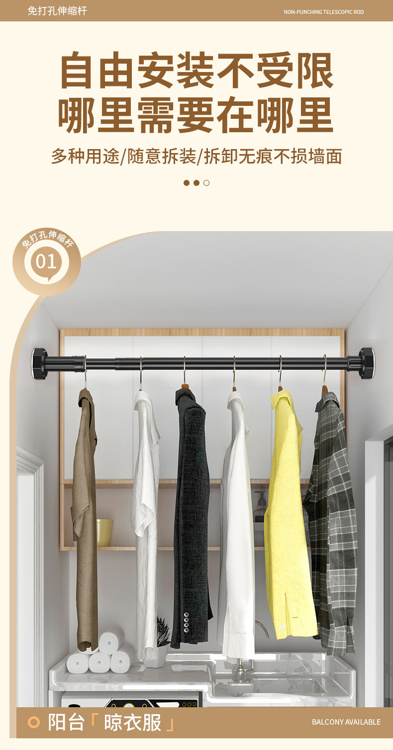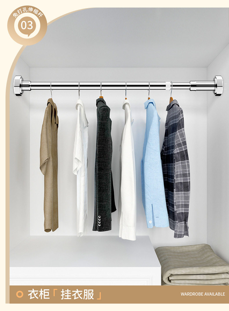 Customized Punch-Free Telescopic Rod Clothes Drying Rod Balcony Clothes Rack Wardrobe Support Rod Curtain Rod Clothes Hanging Rod Shower Curtain Rod