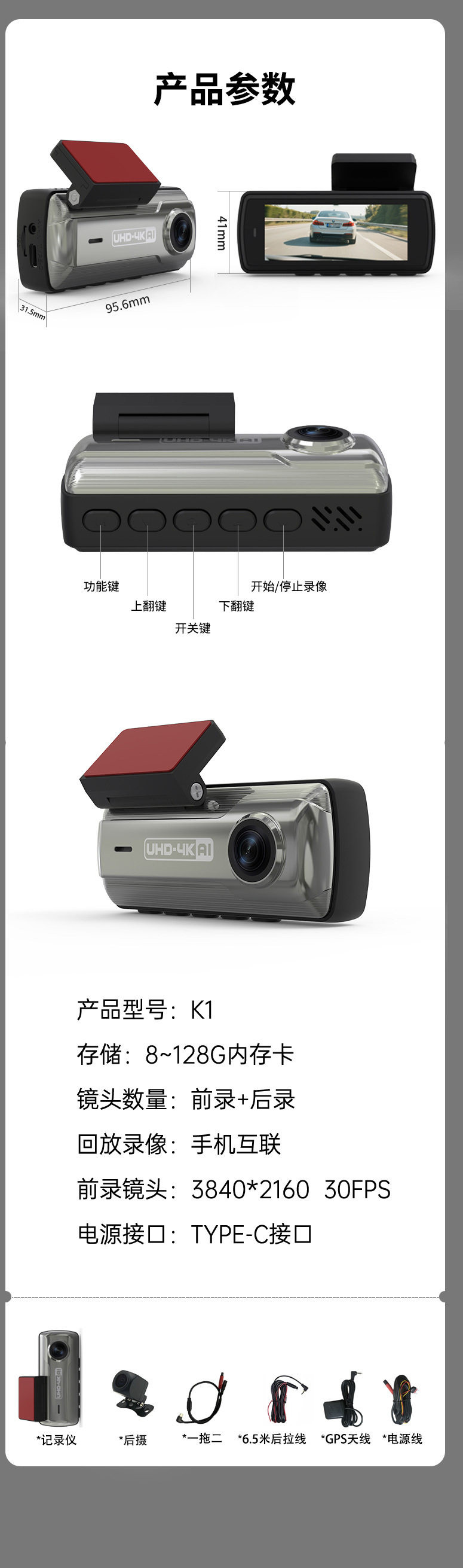 | Specifications and Dimensions | K1 dual recording 12v,K1 dual recording 12v+32g memory card,K1 dual recording (in-cabin & rear view) 12v,K1 dual recording (inside and outside the vehicle) 12v + 32gb memory card |
