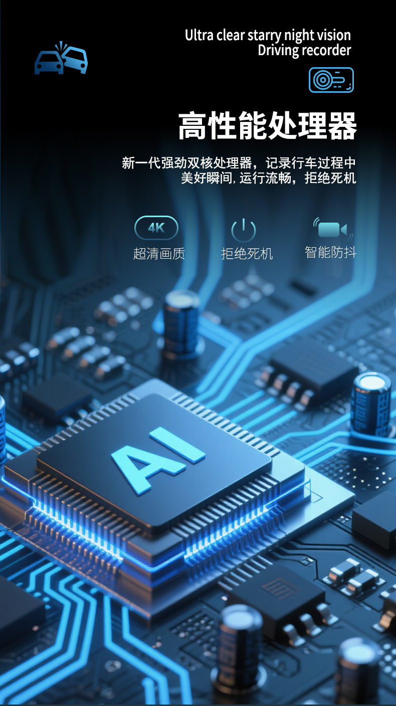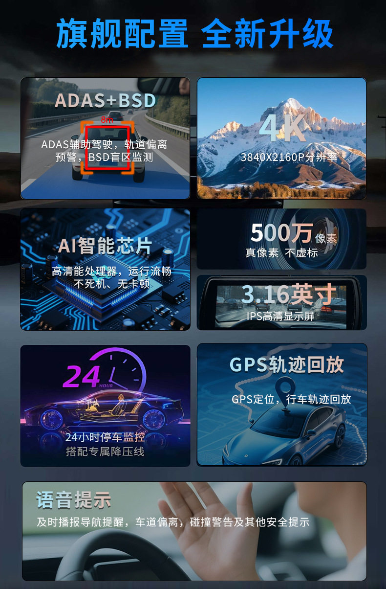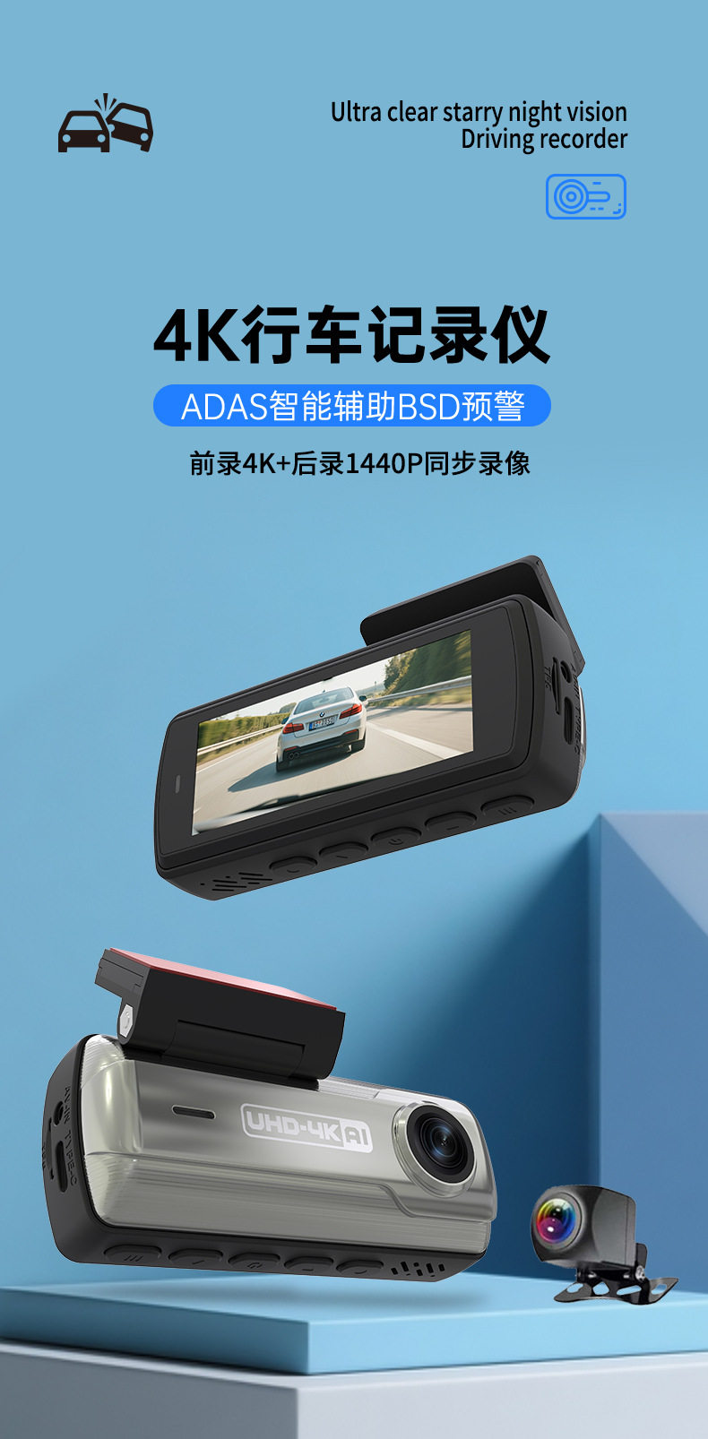 New Ai Smart Driving Recorder Dual Recording Wifi Ultra-Clear Night Vision Adas Parking Monitoring Gps Track Voice