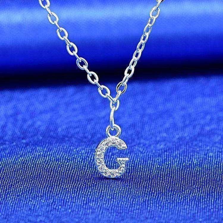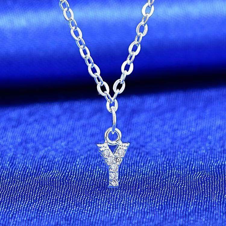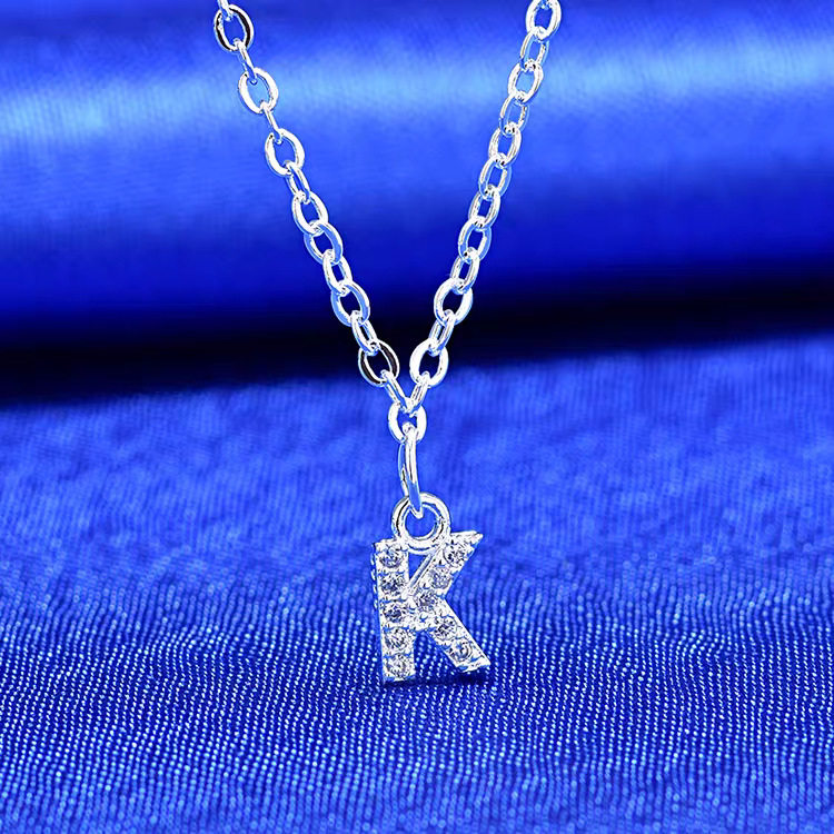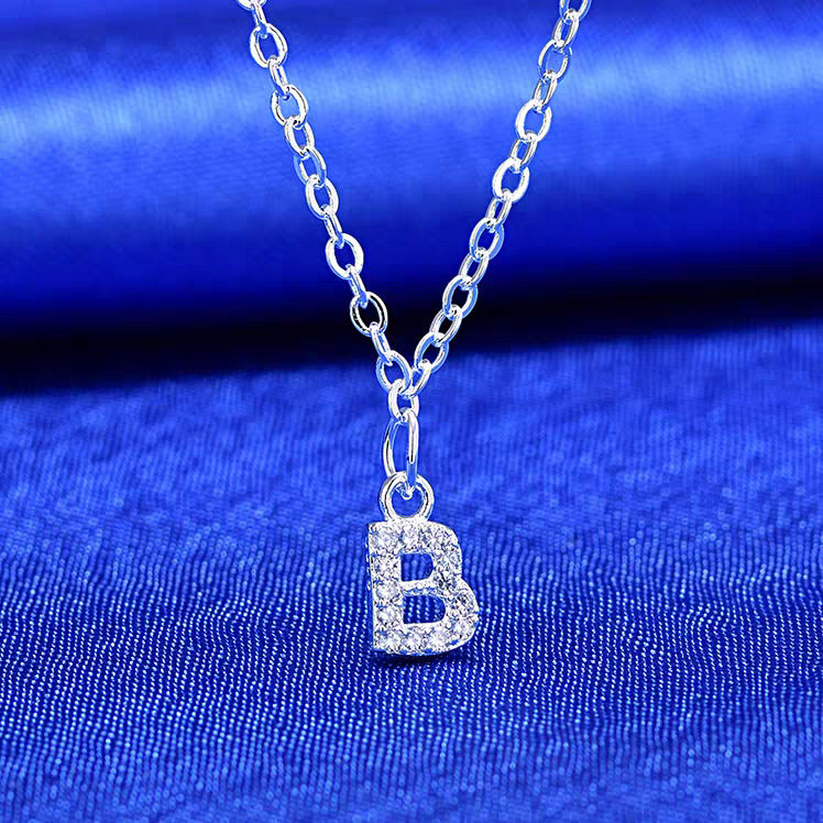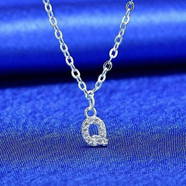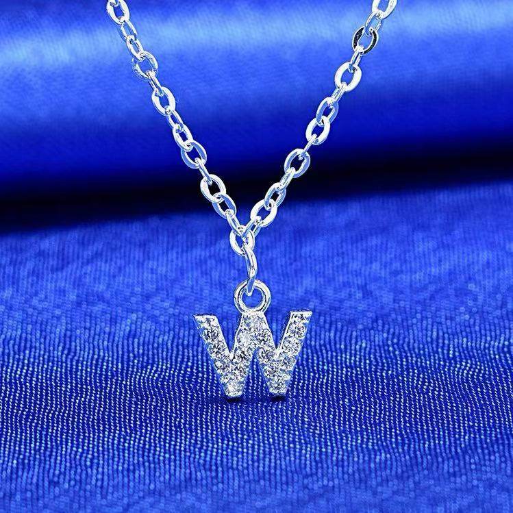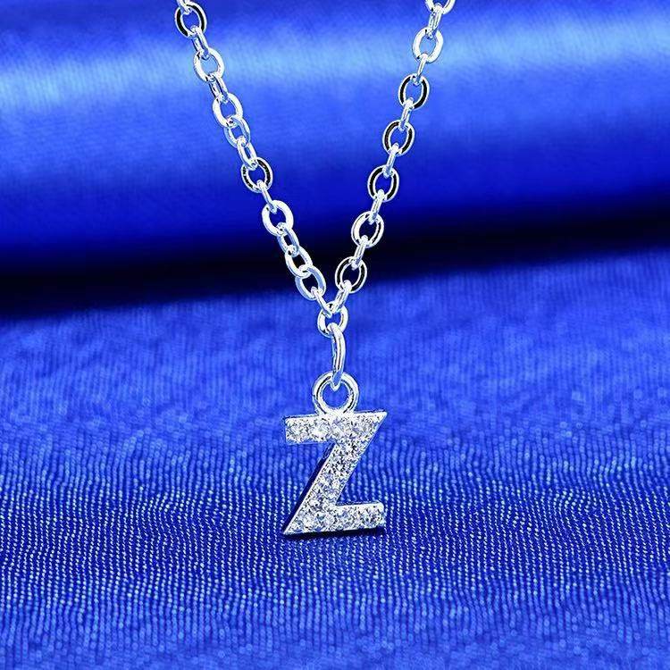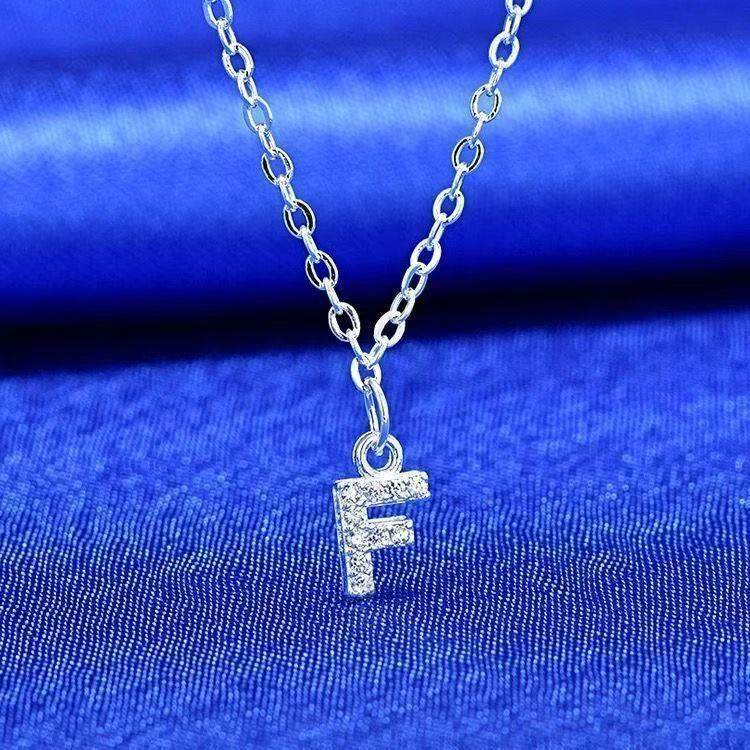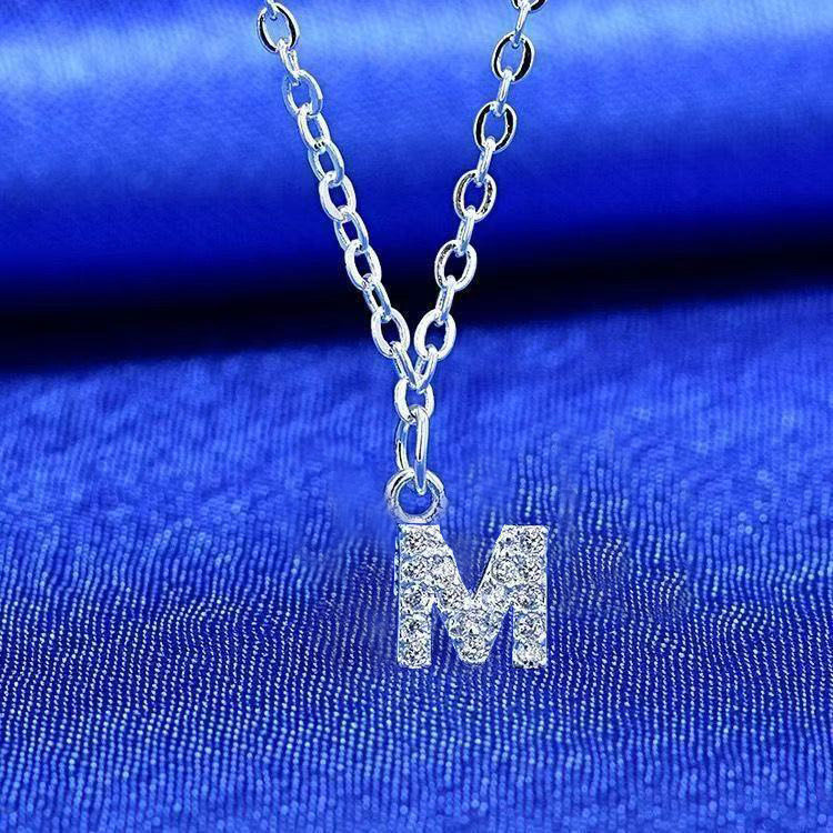 26 English Alphabet Necklace Square Full Diamond Crystal Light Luxury Niche High-End Clavicle Surname Pendant Necklace Wholesale