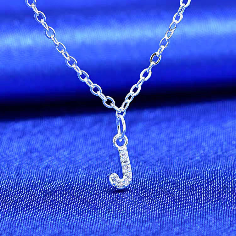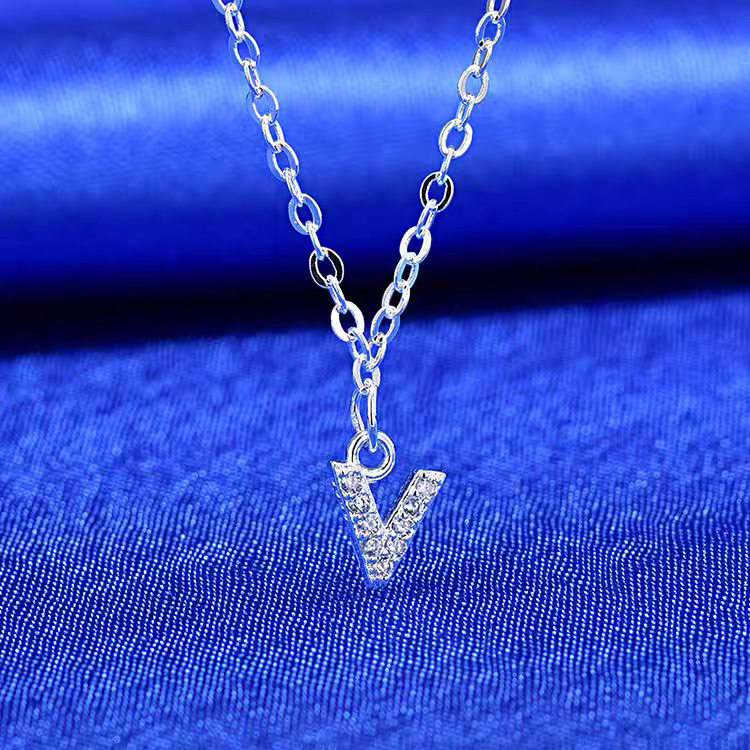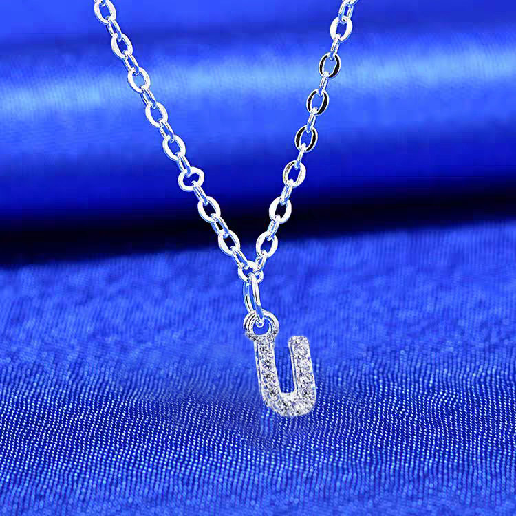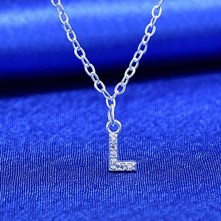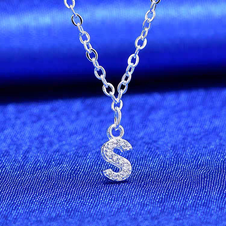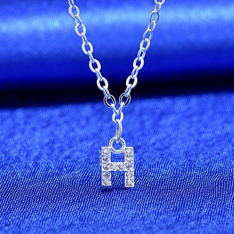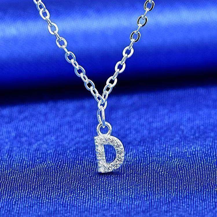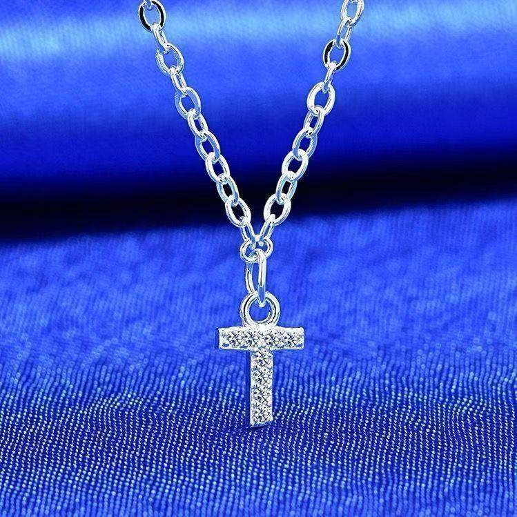 26 English Alphabet Necklace Square Full Diamond Crystal Light Luxury Niche High-End Clavicle Surname Pendant Necklace Wholesale