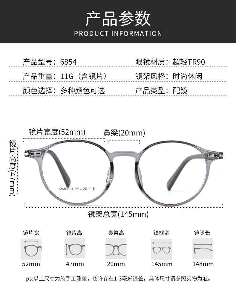 | Frame color | C1 bright black,C2 matte black,C3 brown,C4 transparent gray,C5 transparent color,C6 transparent gray gradient,C7 clear champagne,C8 transparent green |