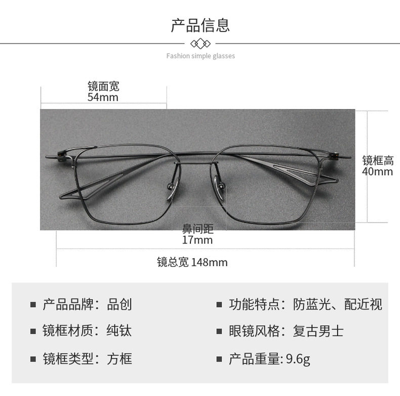 Danyang Ultra-Light Myopia Glasses Frame Men's Business Pure Titanium Square Frame Accent Enlarged Anti-Blue Light Titanium Frame Glasses