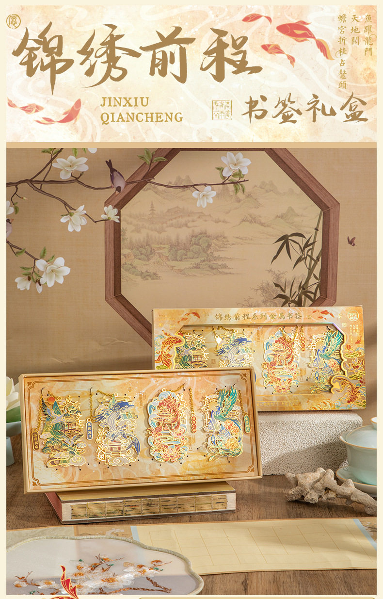 Chinese-Style Metal Bookmark Gift Box Set for Classmates and Friends as Birthday Gifts, Graduation Souvenirs, and Small Blessing Gifts