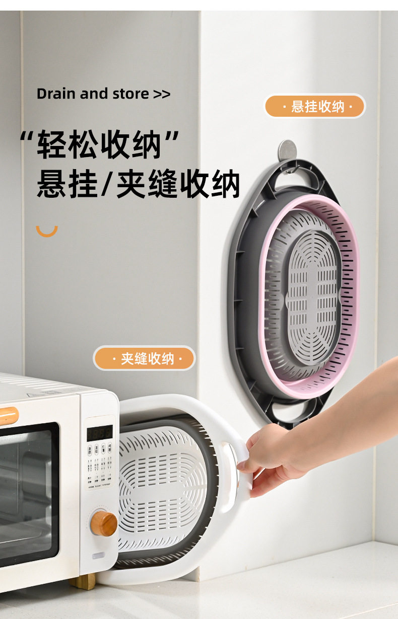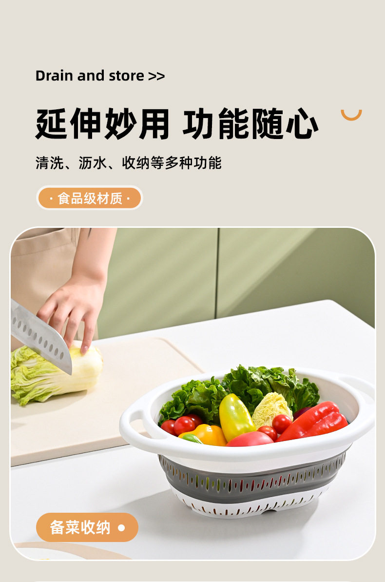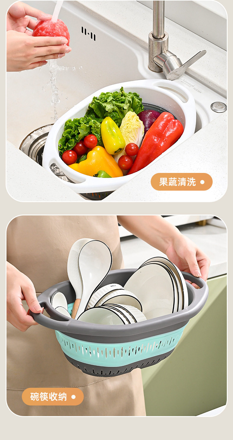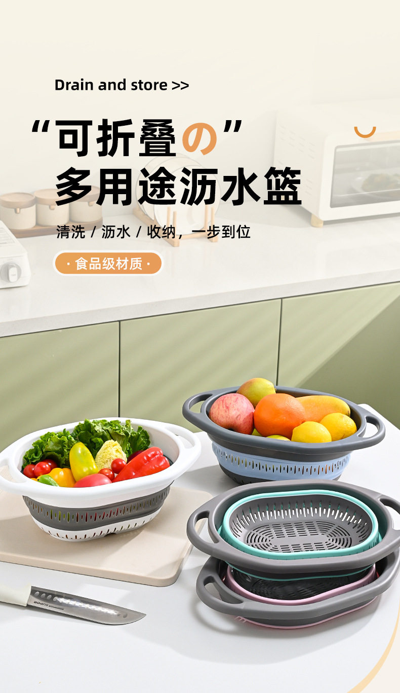 Simple Retractable Draining Basket Kitchen Supplies Rice Washing Sieve Fruit Washing Vegetable Basket Multifunctional Foldable Hanging Fruit