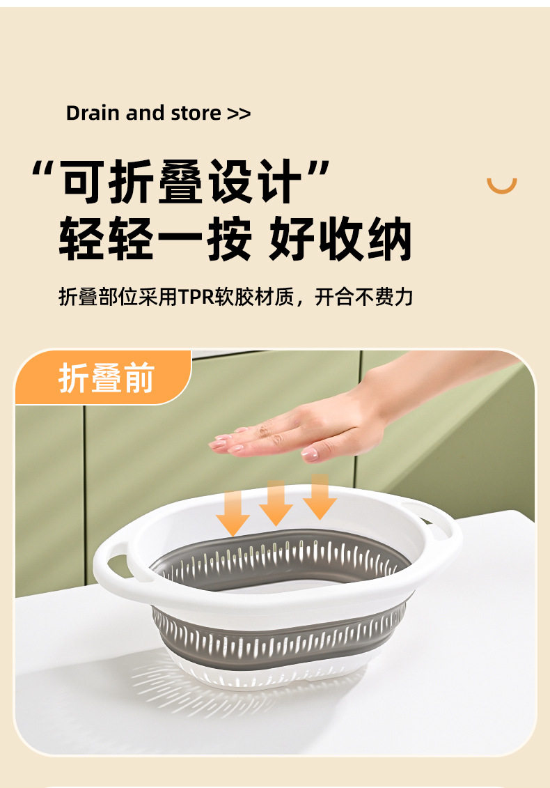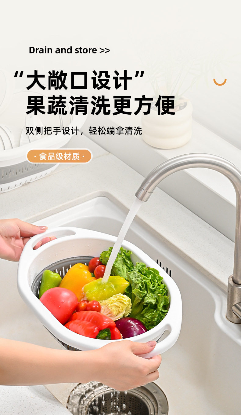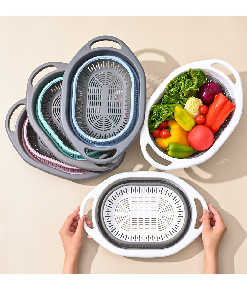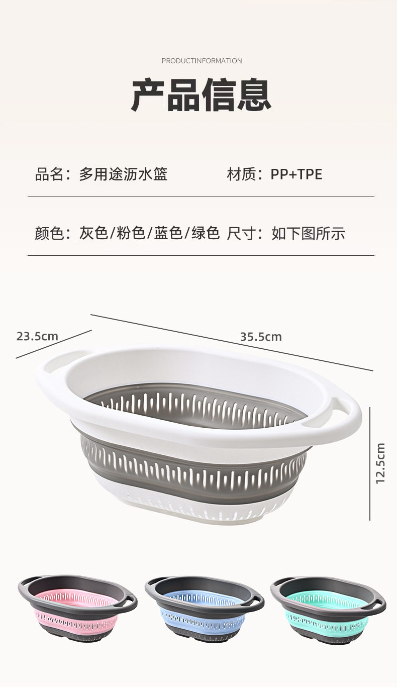 Simple Retractable Draining Basket Kitchen Supplies Rice Washing Sieve Fruit Washing Vegetable Basket Multifunctional Foldable Hanging Fruit