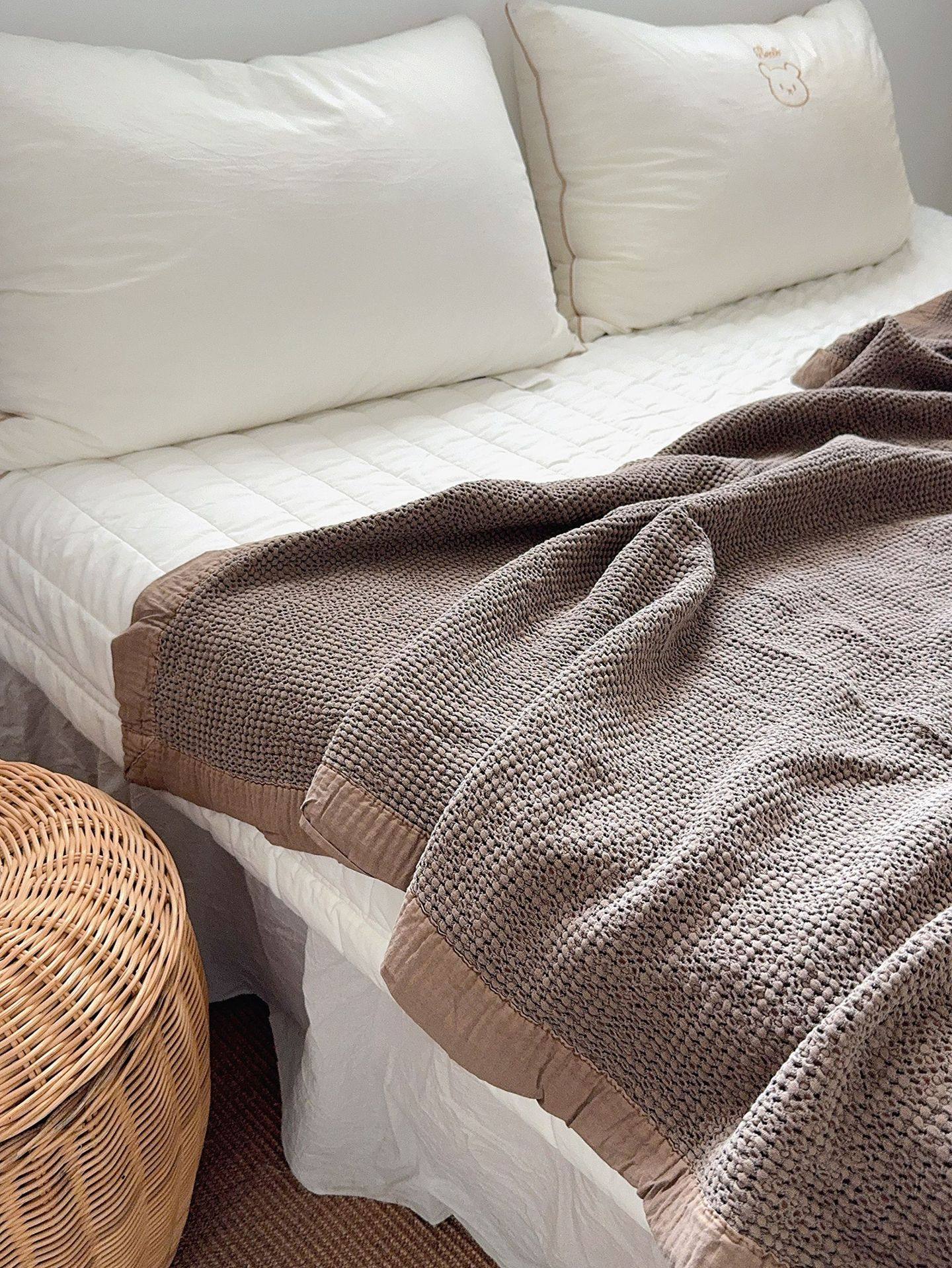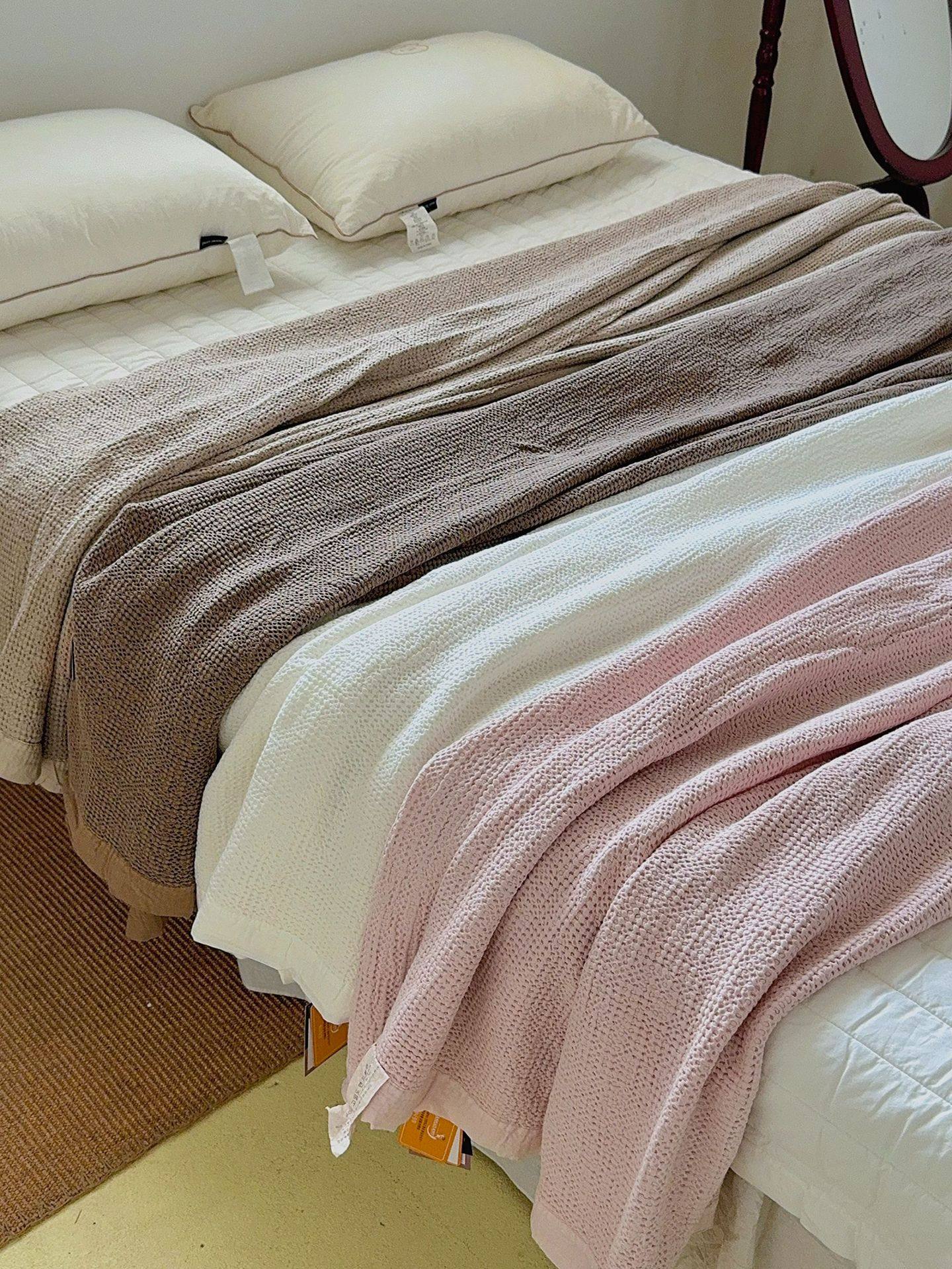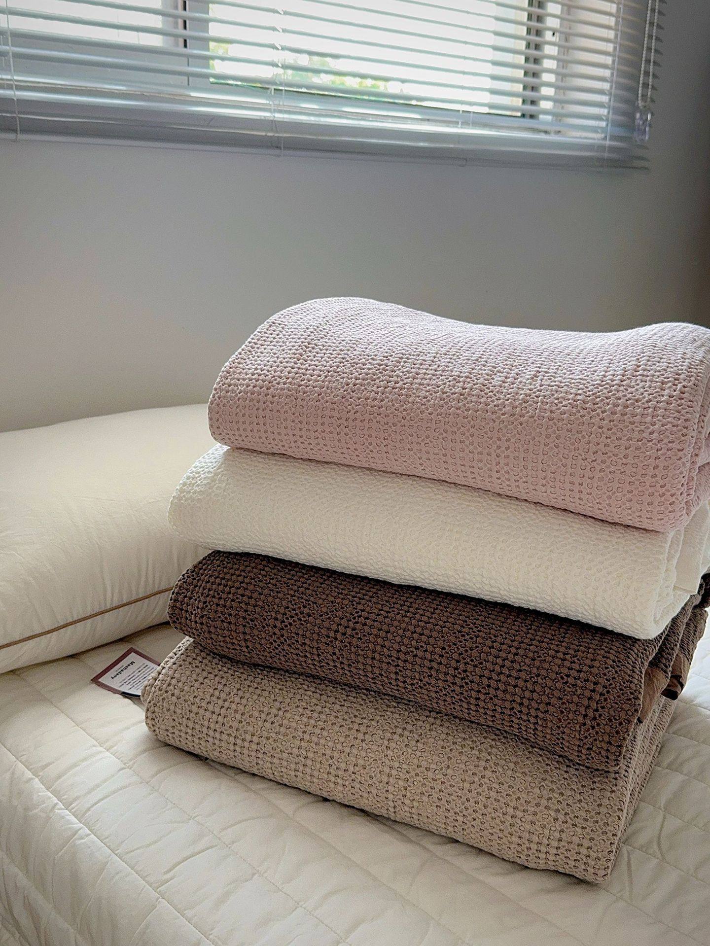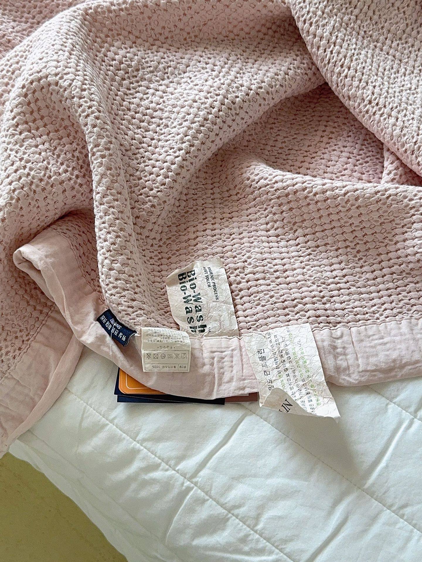 Korean Cotton Waffle Blanket Export Ins Sand Washed Natural One-Piece Dyed Multi-Functional Sofa Blanket Air-Conditioning Blanket