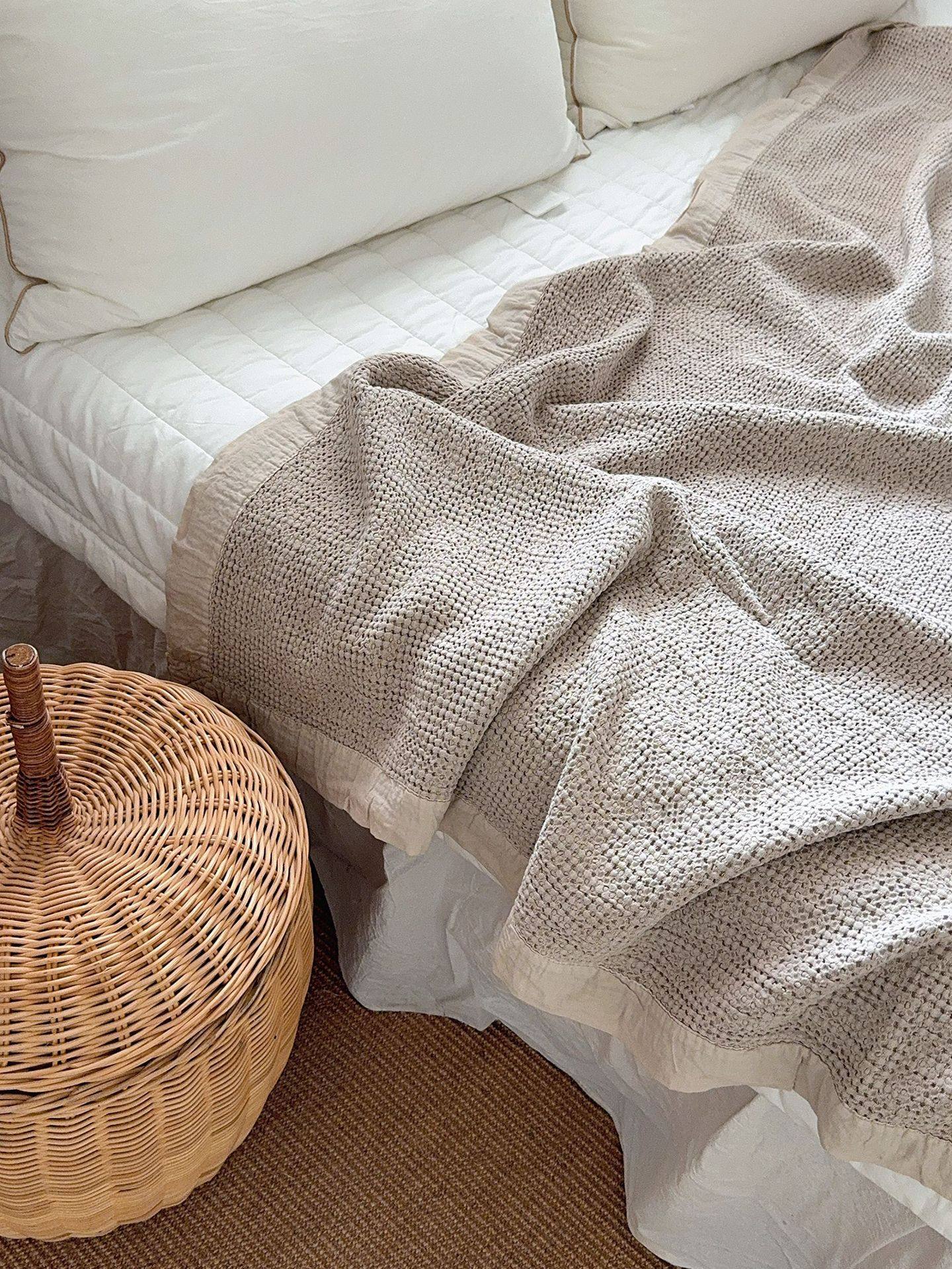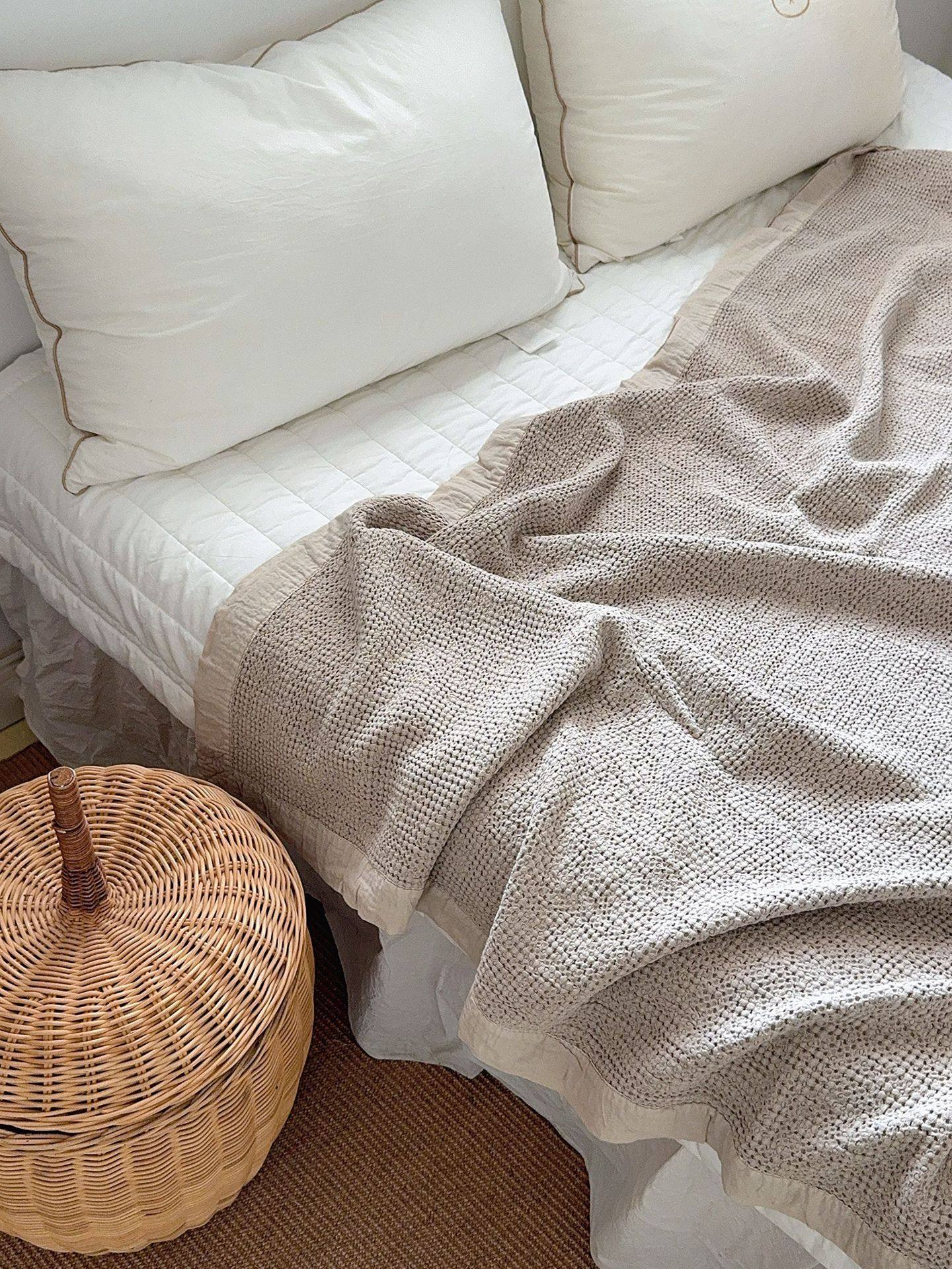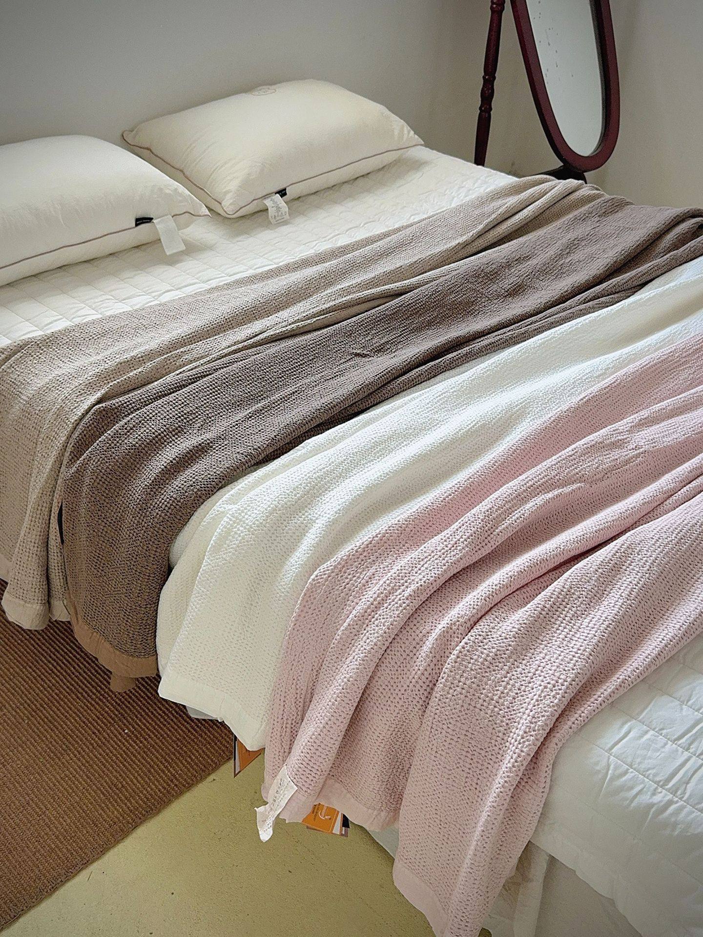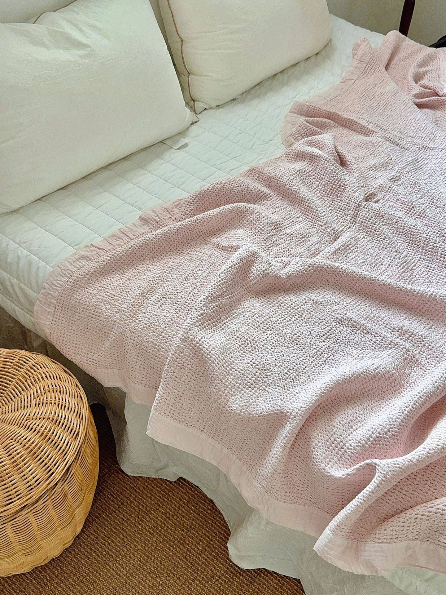 Korean Cotton Waffle Blanket Export Ins Sand Washed Natural One-Piece Dyed Multi-Functional Sofa Blanket Air-Conditioning Blanket