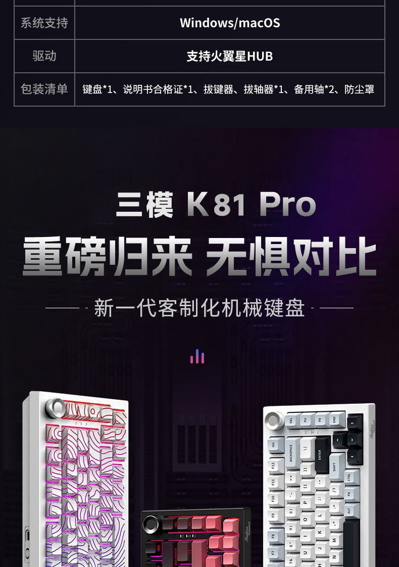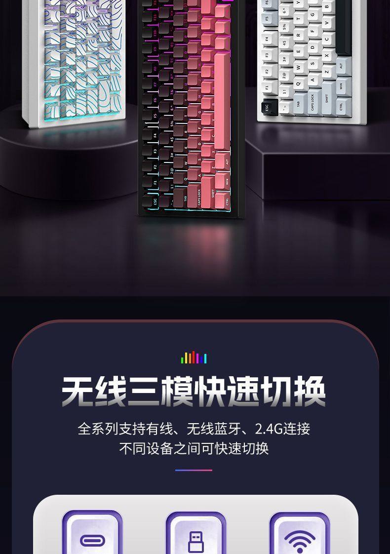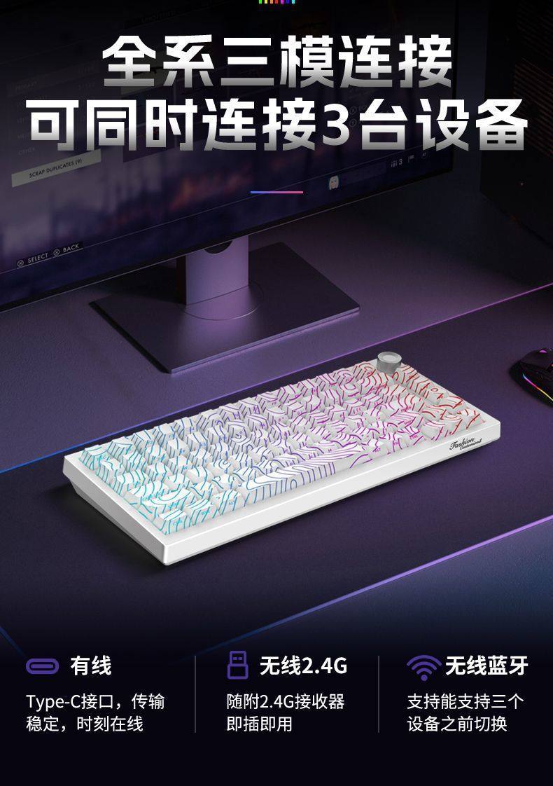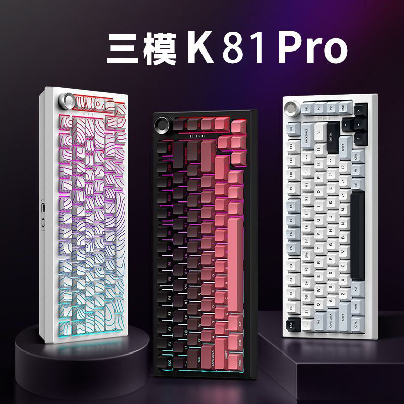 Three-Mode Customized Mechanical Keyboard K81 Hot-Swappable Mechanical Keyboard with Knob Gradient Colorful Contour Side Engraved Mechanical Keyboard
