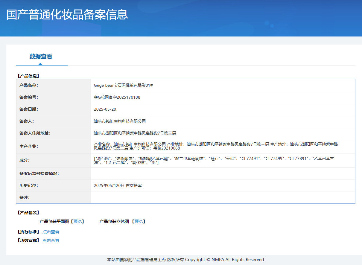 | Non-special cosmetics registration certificate number | Guangdong g makeup net preparation calligraphy 2025170188 |