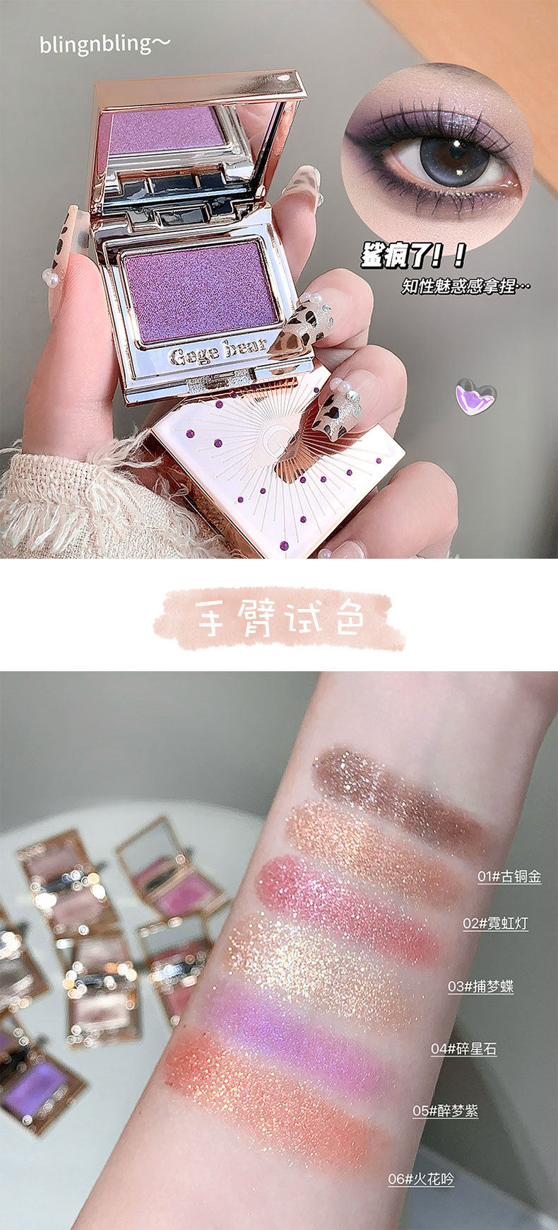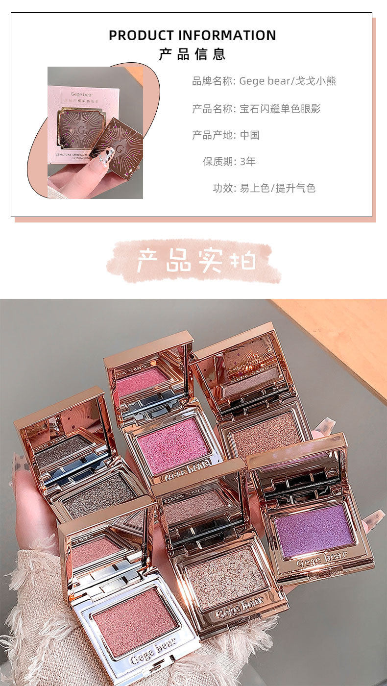 Gege Bear Gemstone Shining Single Color Eye Shadow Fine Shimmer Color Natural Non-Flying Powder Domestic Student Eye Shadow Makeup