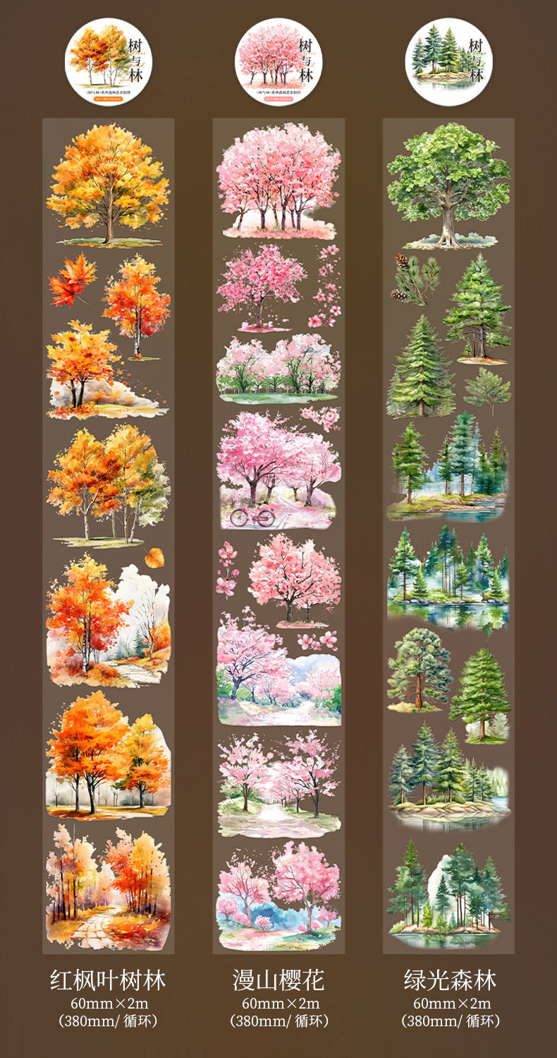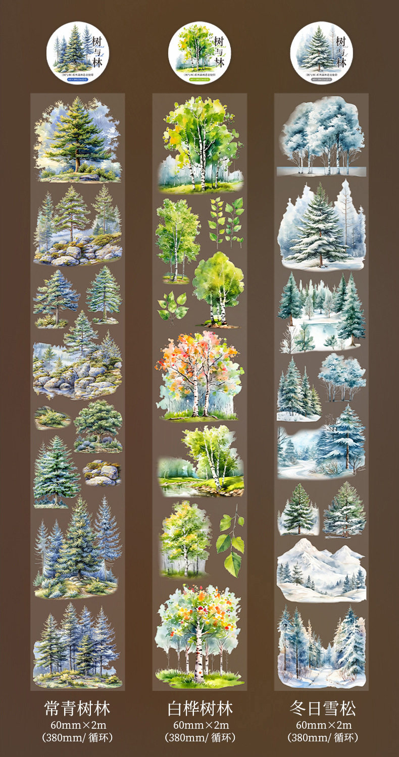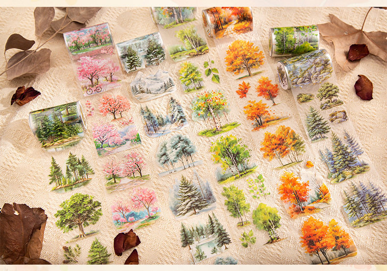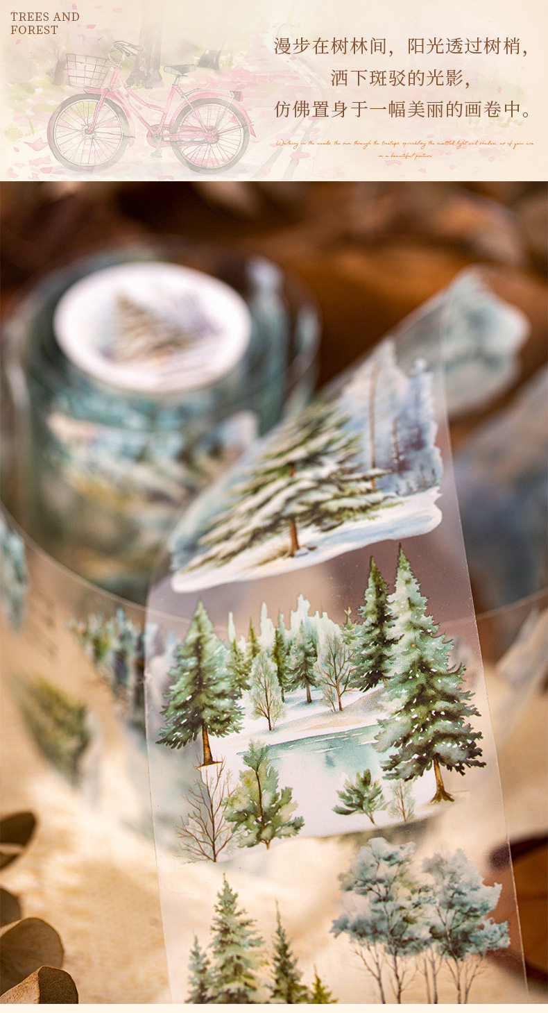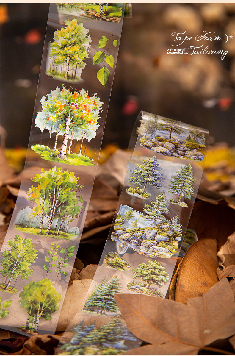 Tree and Forest Series Beautiful Day Tape Tree Forest Landscaping Handbook Material Recycling Stickers 6 Styles