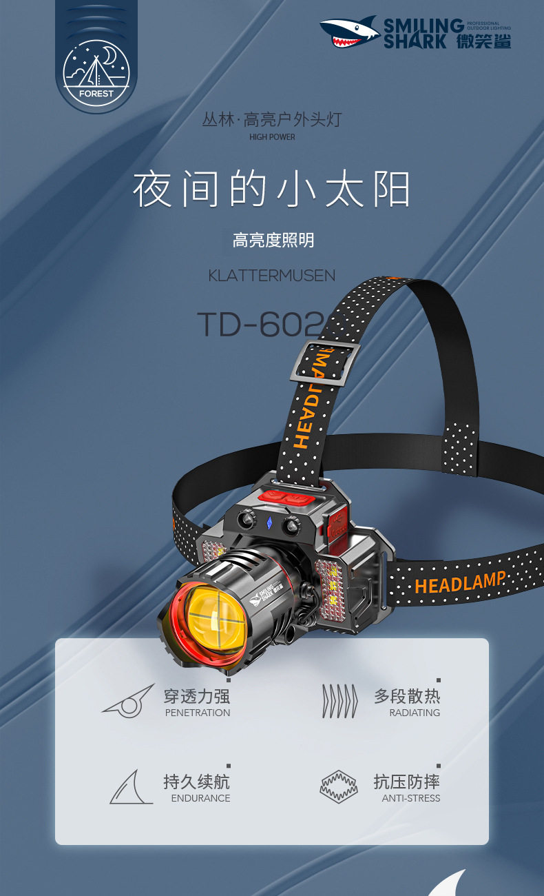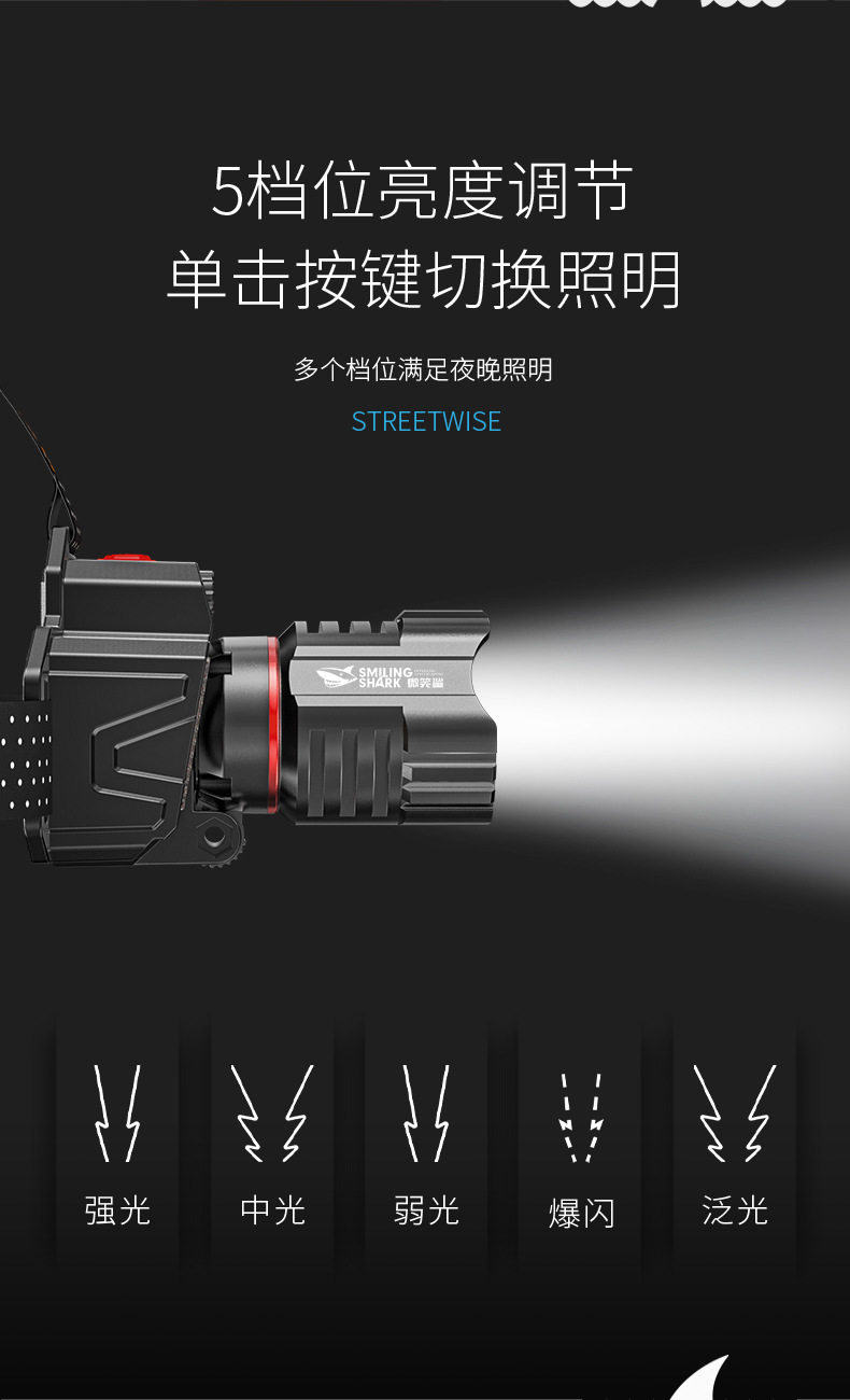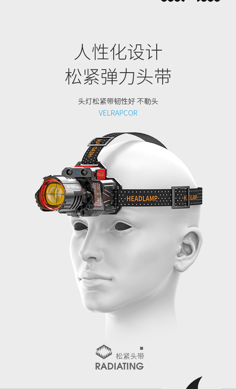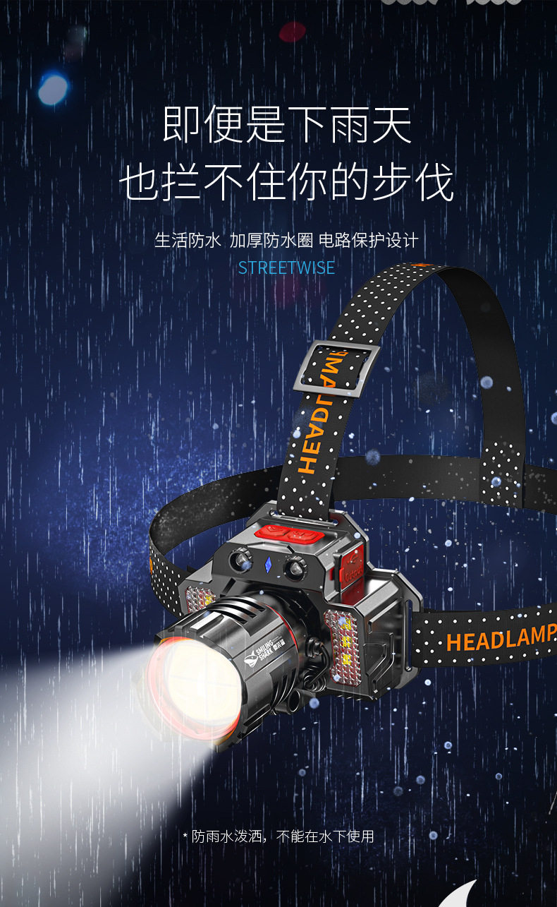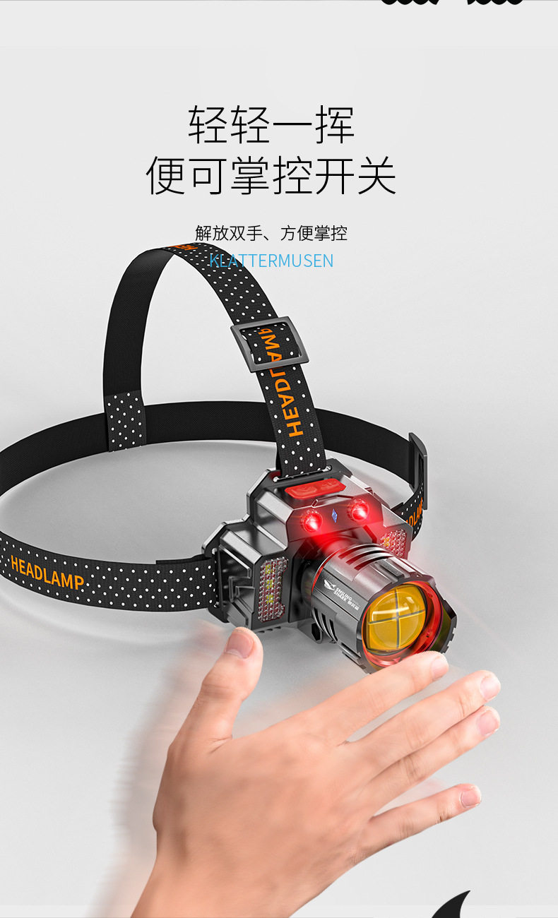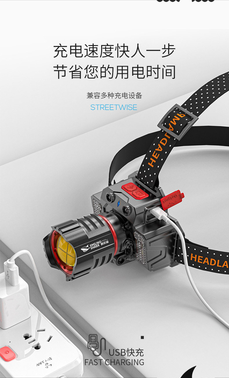 Outdoor Ultra-Bright Led Headlight, Strong Light Charging, Head-Mounted Sensor, Special Lighting for Night Fishing, Long-Lasting Battery Life