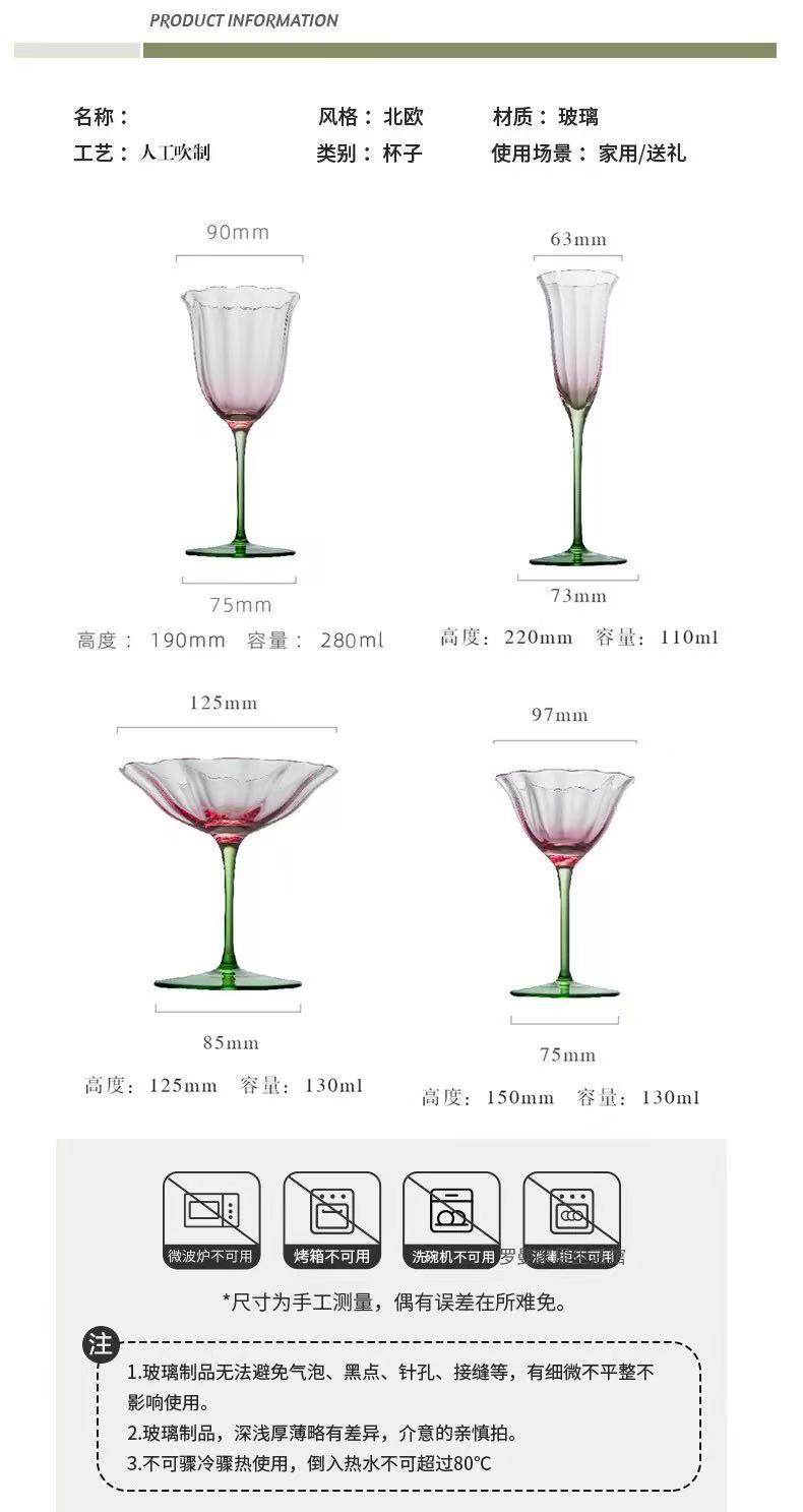| Color | 【1 piece】classic champagne glass,Pink and green lace flower martini glass,Pink and green lace flower cocktail glass,Pink and green lace flower red wine glass,Pink and green lace flower short water cup,Pink and green lace flower tall water cup |