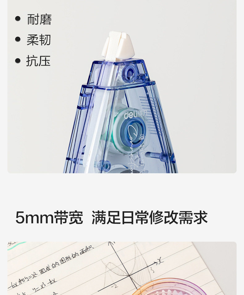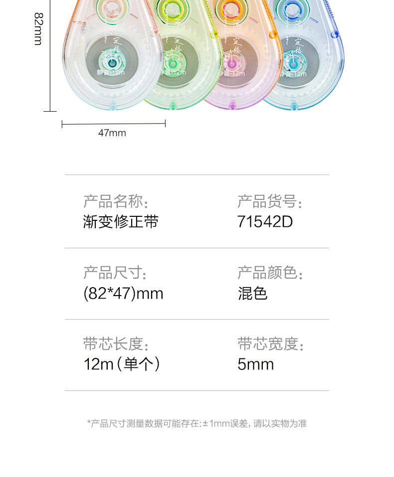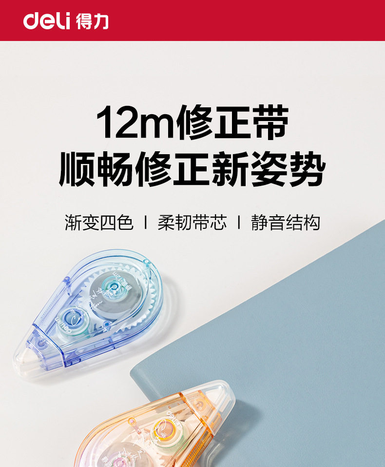 Deli Large-Capacity Silent Correction Tape for Students, Continuous Correction Tape, Macaron Gradient Color Correction Tape