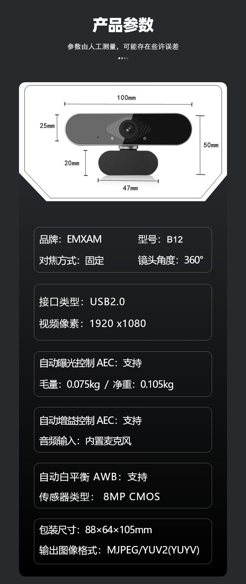 | Color | B12-720p standard definition digital fixed focus [built-in microphone] driver-free plug-and-play usb camera,B12-1080p hd digital fixed focus [built-in microphone] driver-free plug-and-play usb camera,B12-4k hd digital fixed focus [built-in microphone] driver-free plug-and-play usb camera |