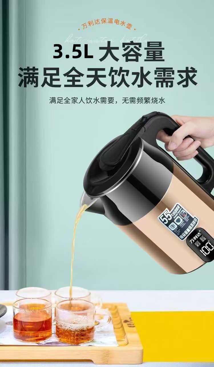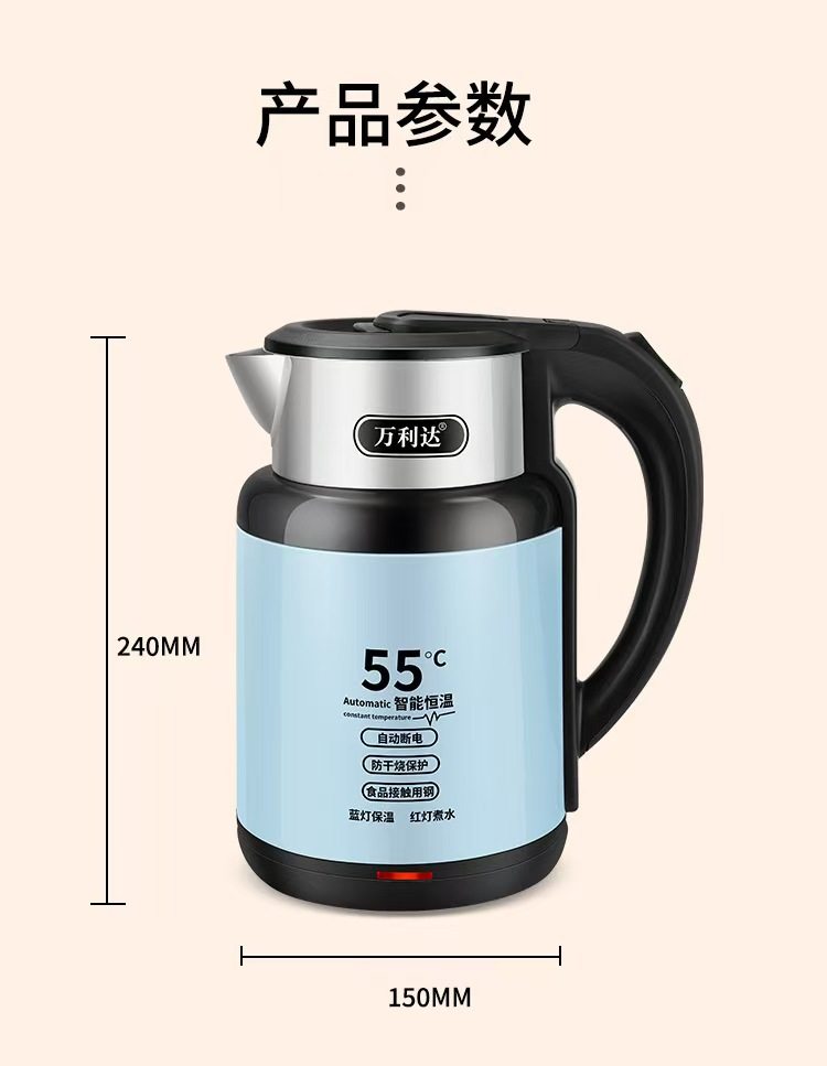 Wanlida 304 Electric Kettle for Home Use, Insulated, Constant Temperature, Automatic Power-Off, Large Capacity, Thickened
