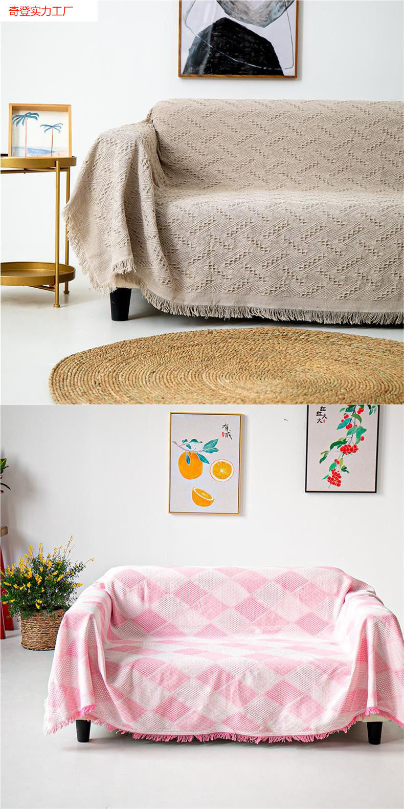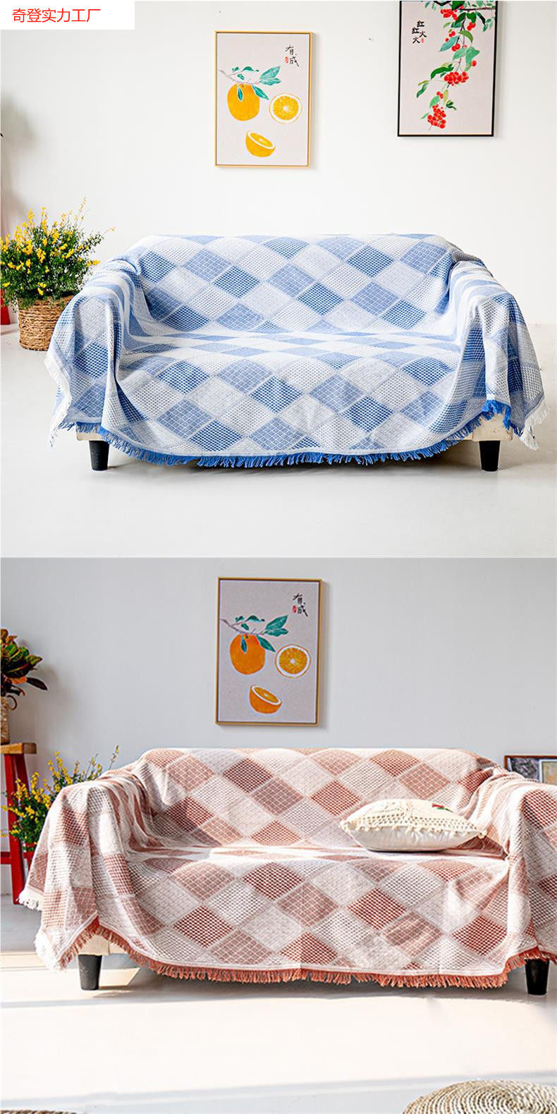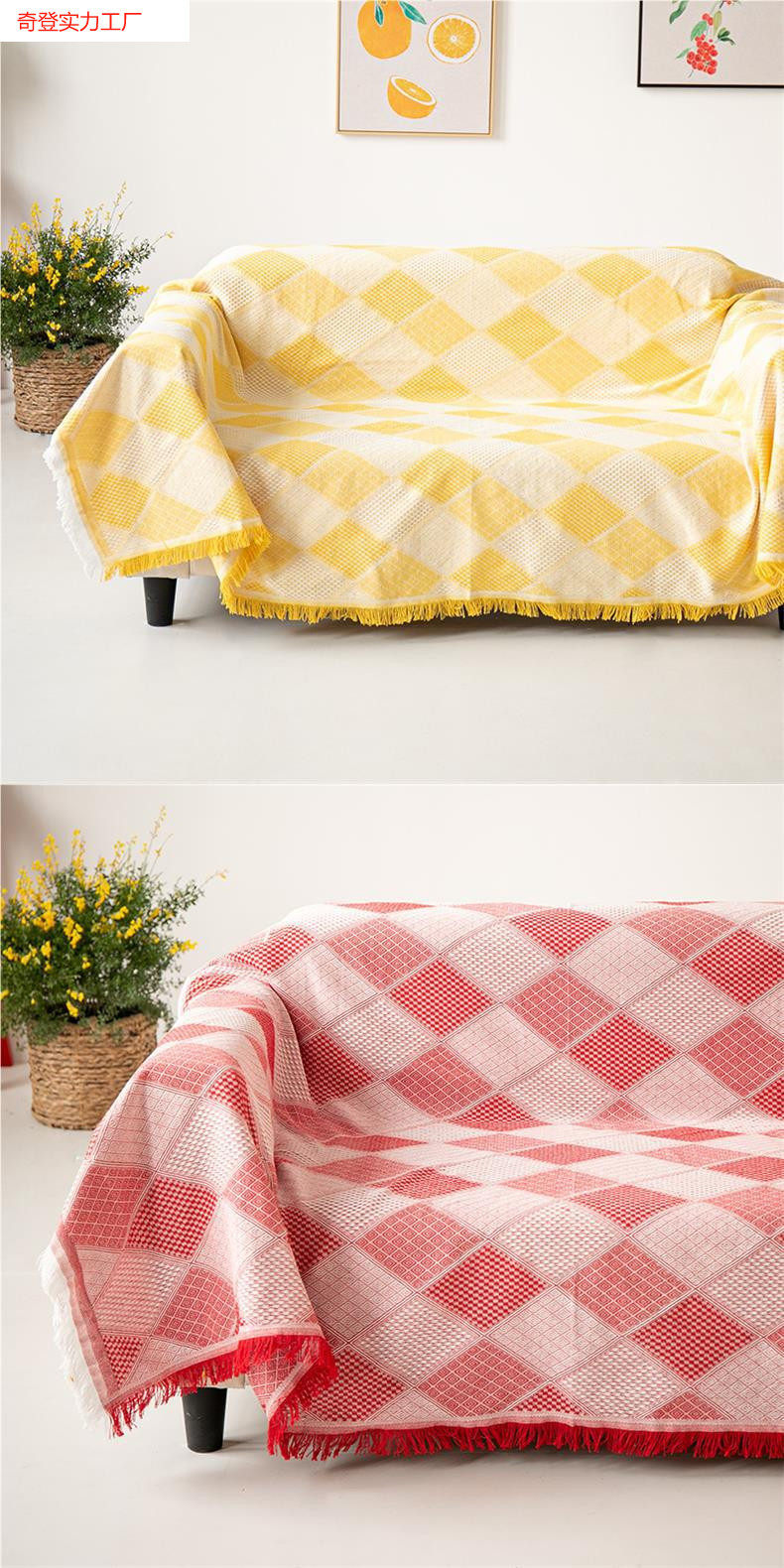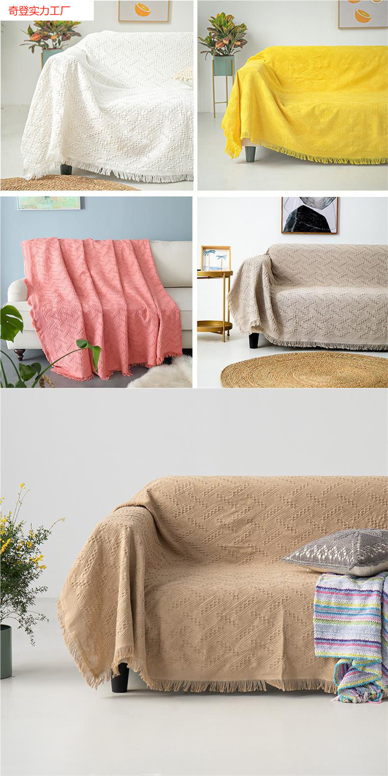 European-Style Double Seat Thickened Blanket Fabric Non-Slip Cover Blanket Pastoral Sofa Towel Full Cover Dust Cover Tassel Simple