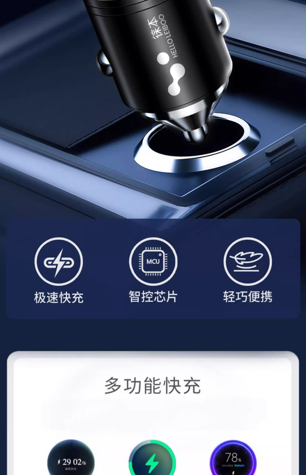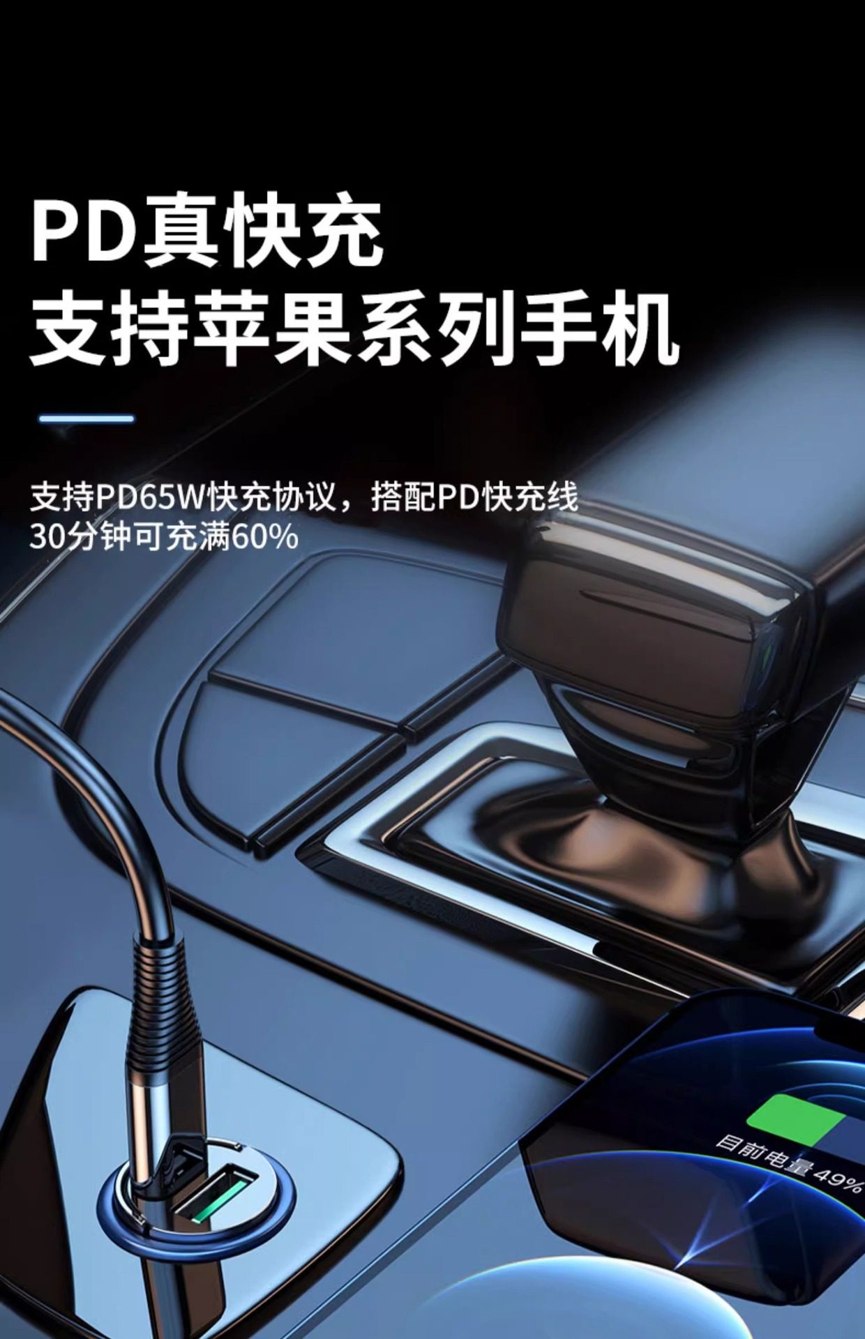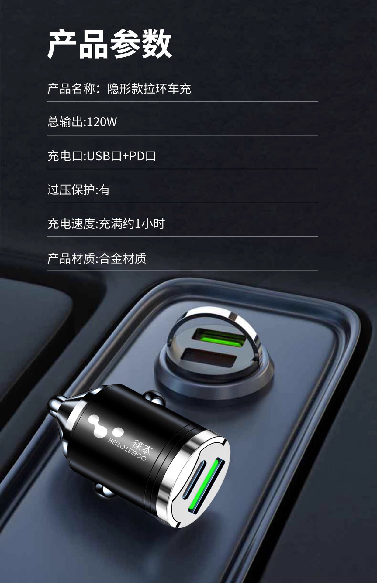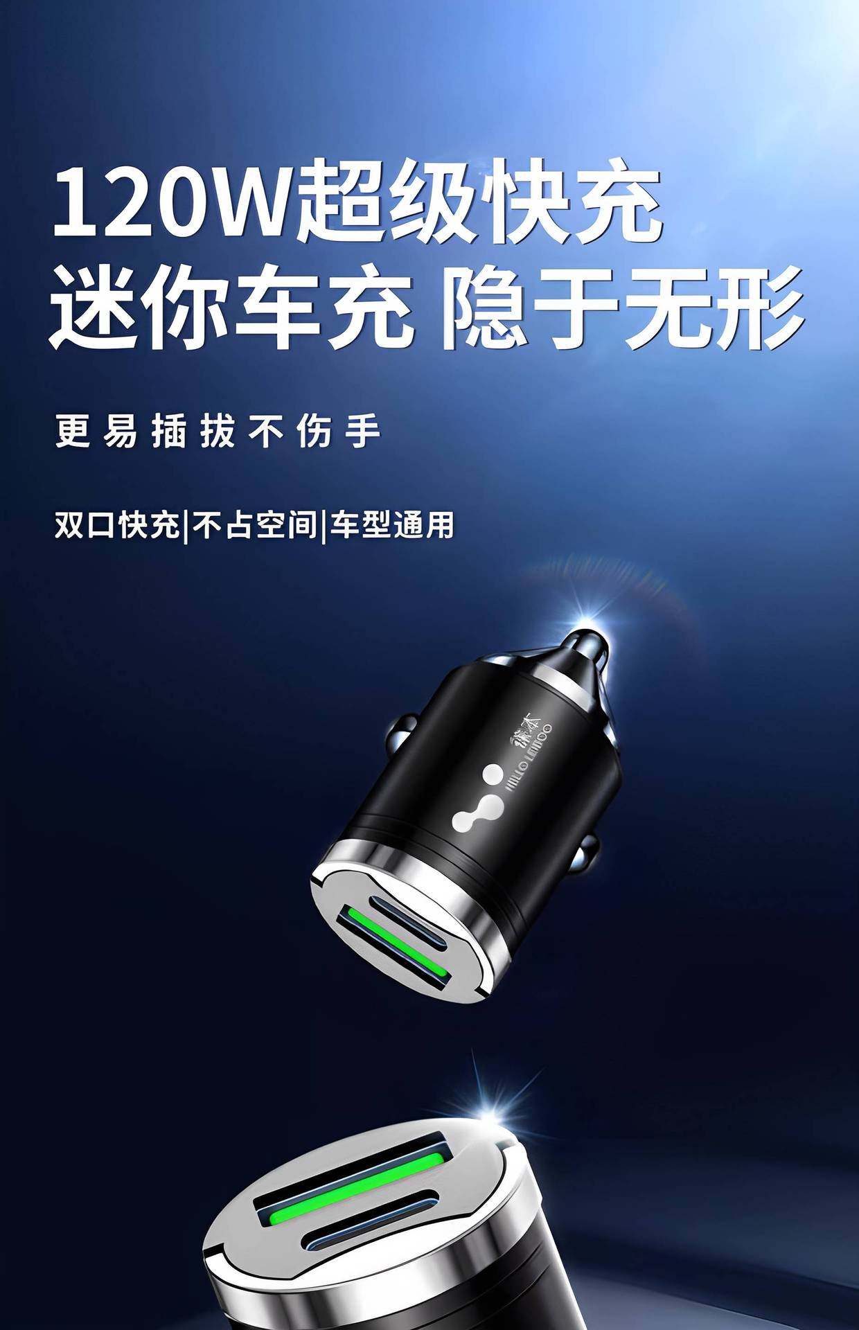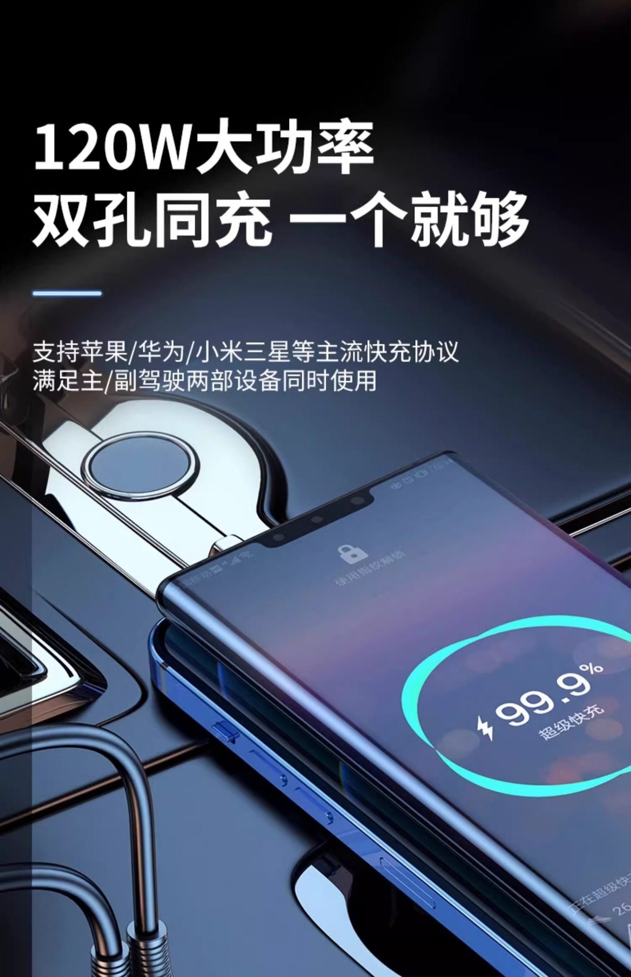 Car Charger Super Fast Charging Mobile Phone One to Two Invisible 120W Cigarette Lighter Conversion Plug Car Charger Hidden