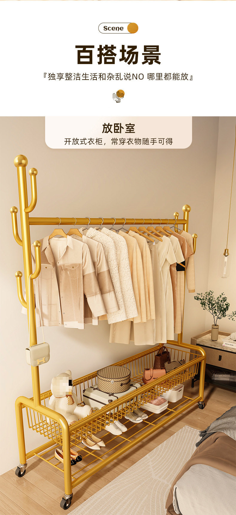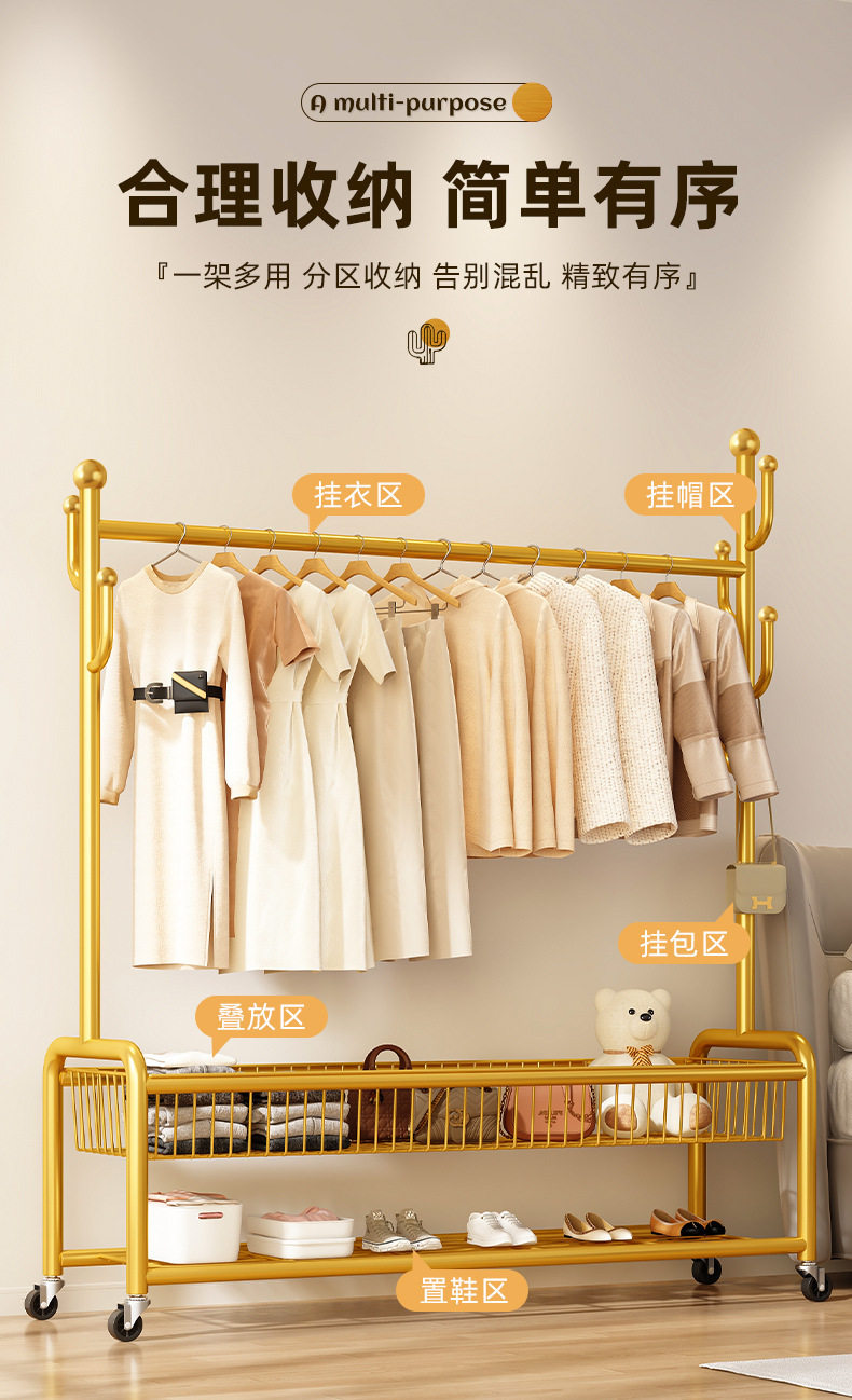 Coat Rack, Floor-Standing Bedroom, Home Room Clothes Rack, Mobile Clothes Drying Rack, Indoor Simple Clothes Rack