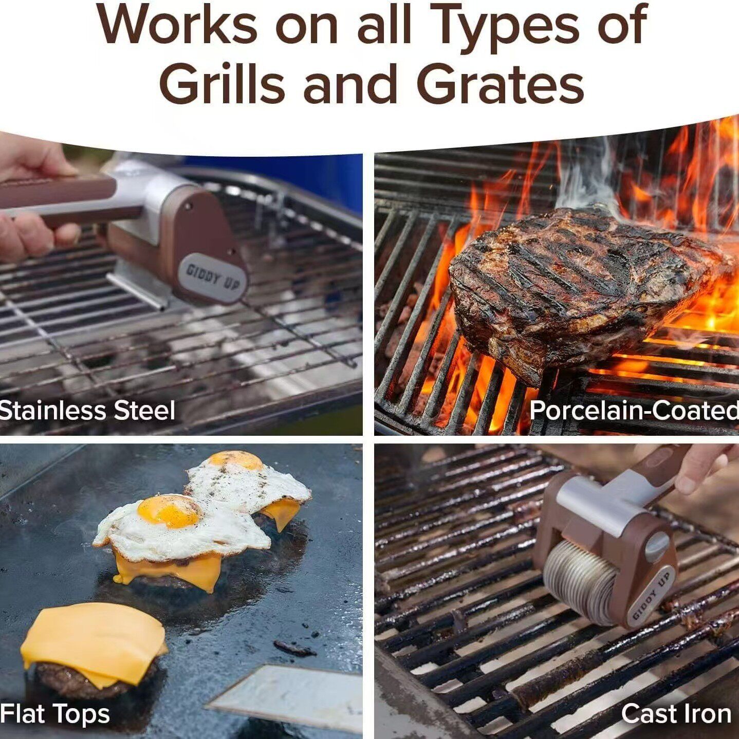 2025 Cross-Border Hot Product 304 Stainless Steel Roller Barbecue Brush with Led Light Brushless Food Grade Removal Brush