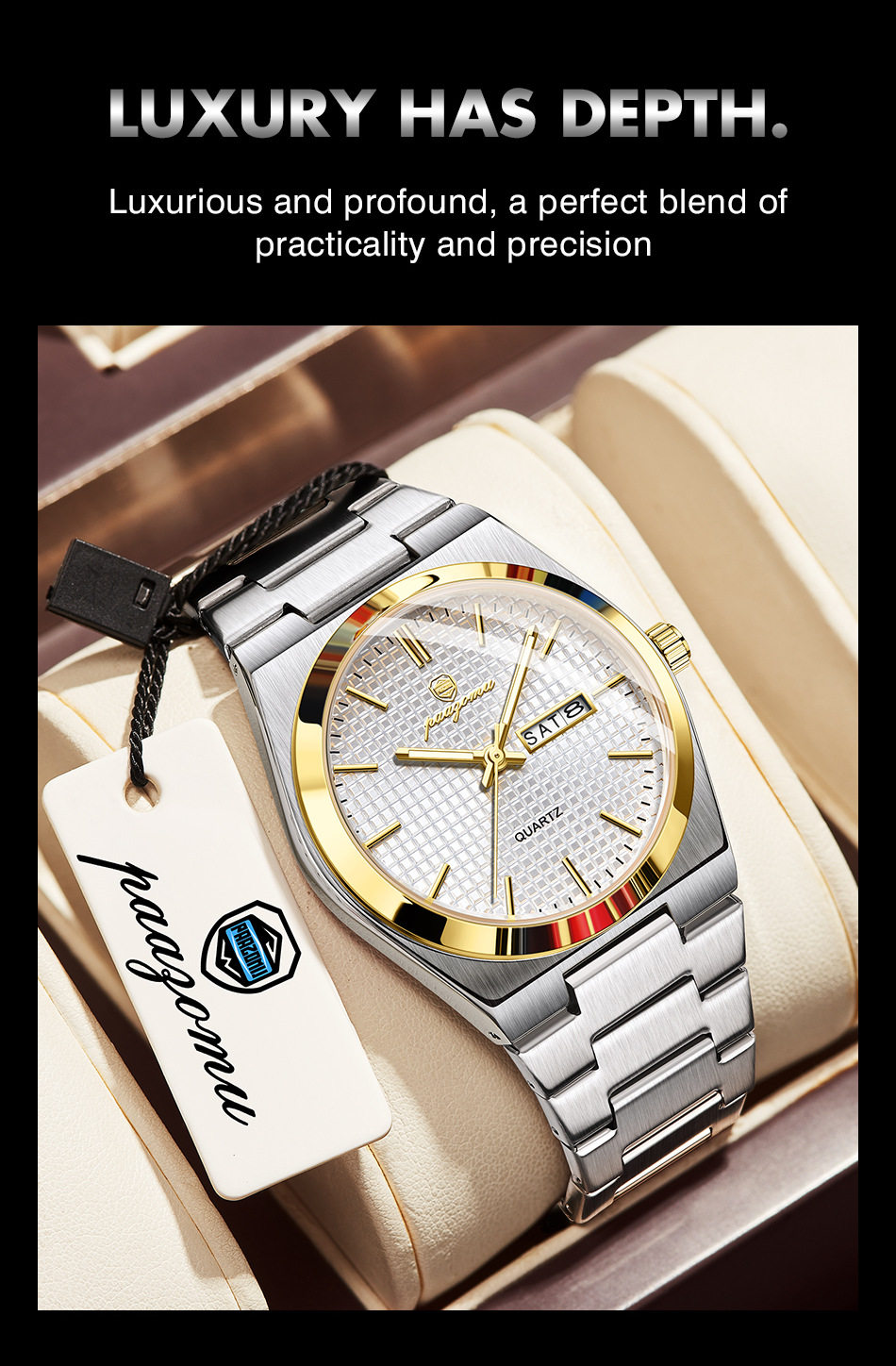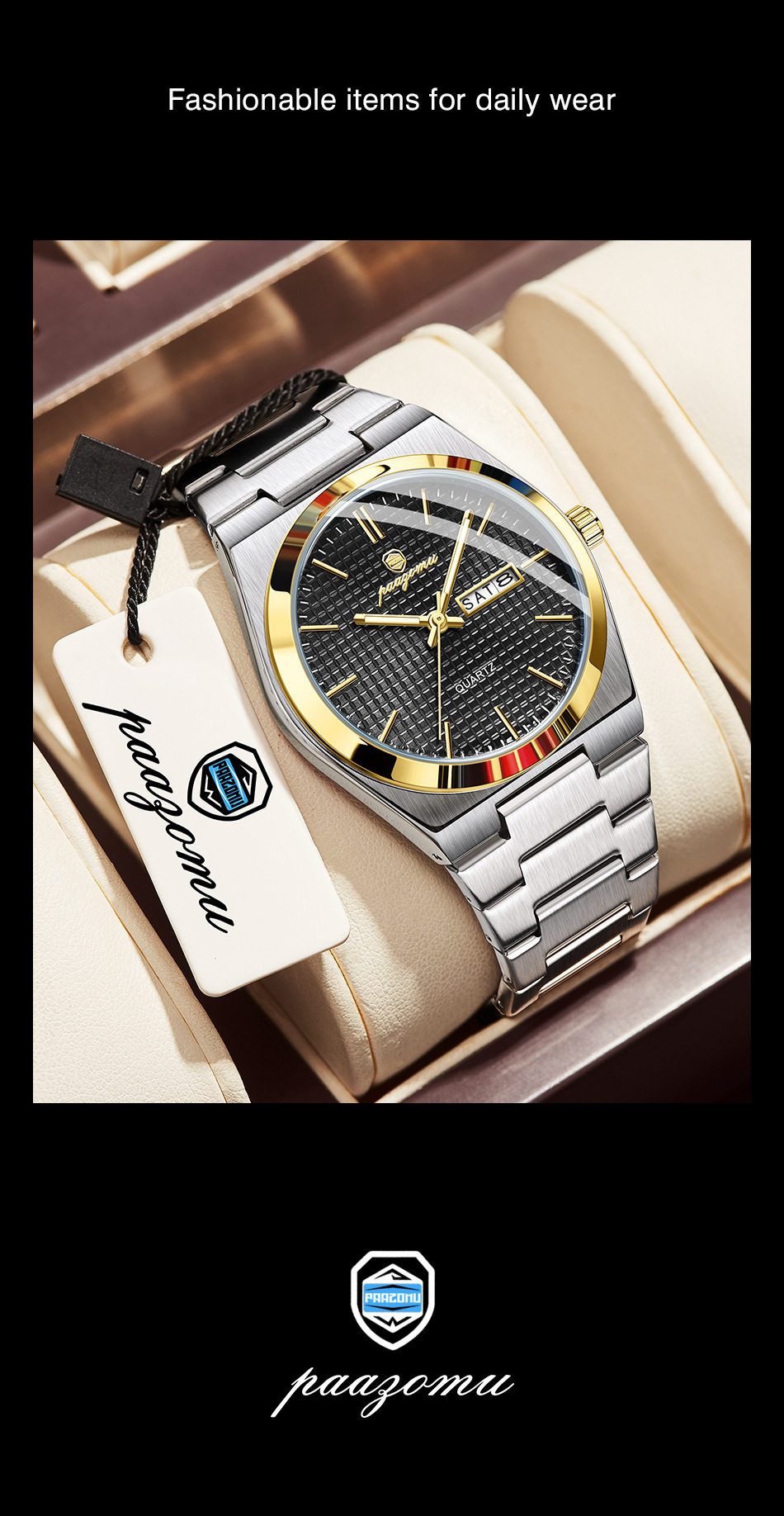 Swiss Brand Paazomu Cross-Border Popular Men's Watch with Large Dial, Luminous Quartz, Waterproof Calendar Watch