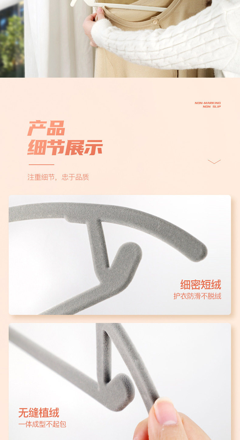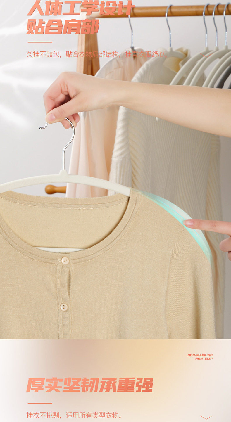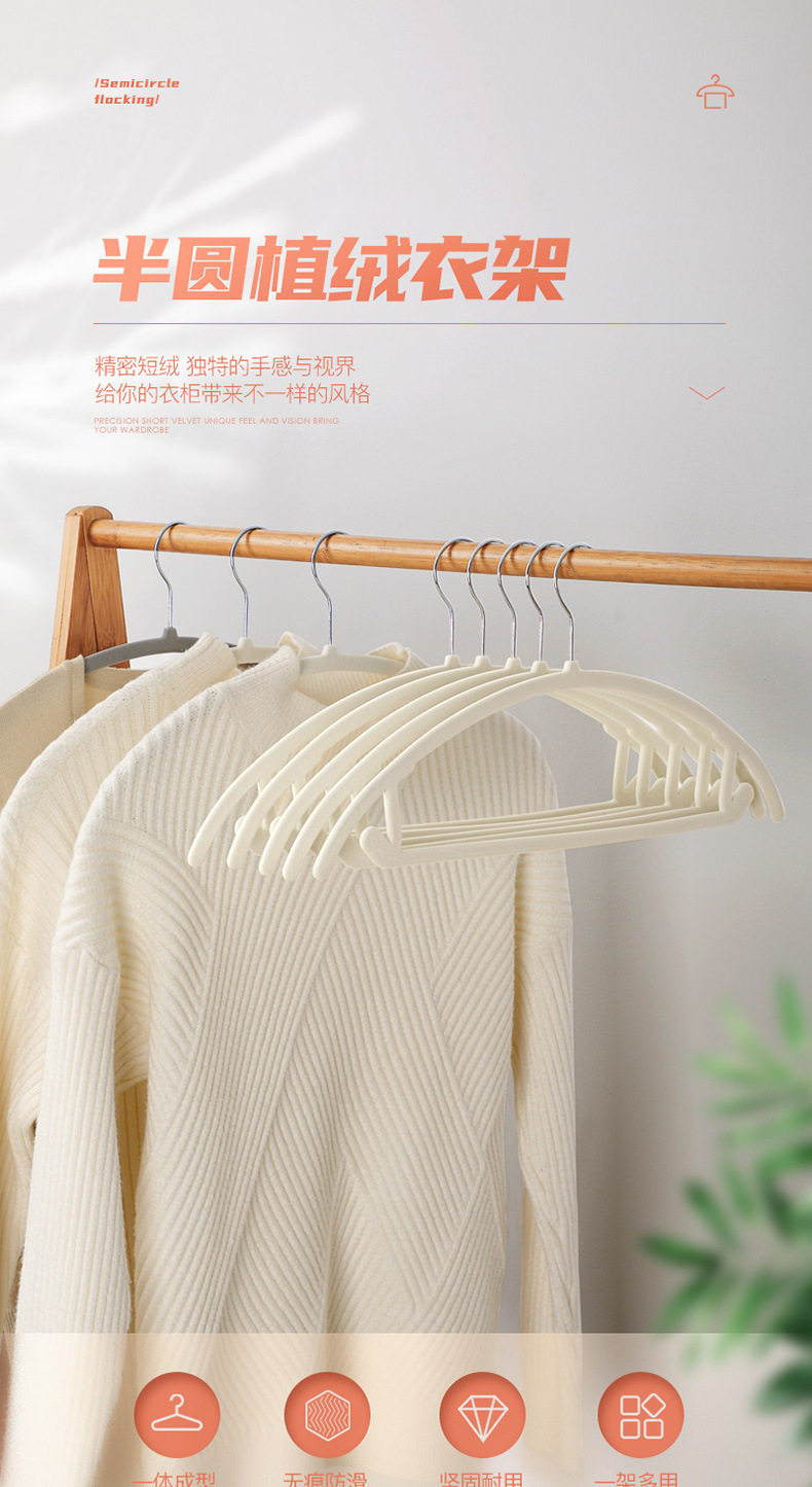 Flocking Clothes Hanger for Home Use, Seamless Wide Shoulder, Non-Slip, Lint-Free, Thickened and Reinforced, Storage and Drying Multifunctional Clothes Hanger
