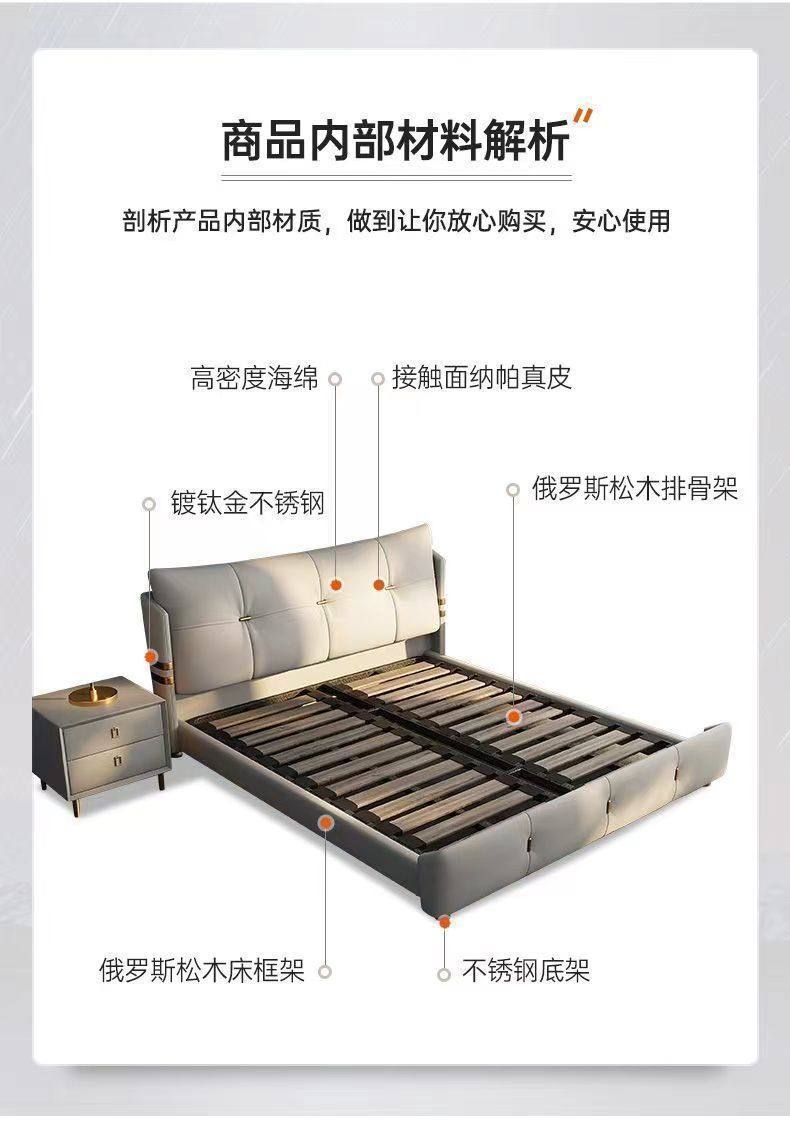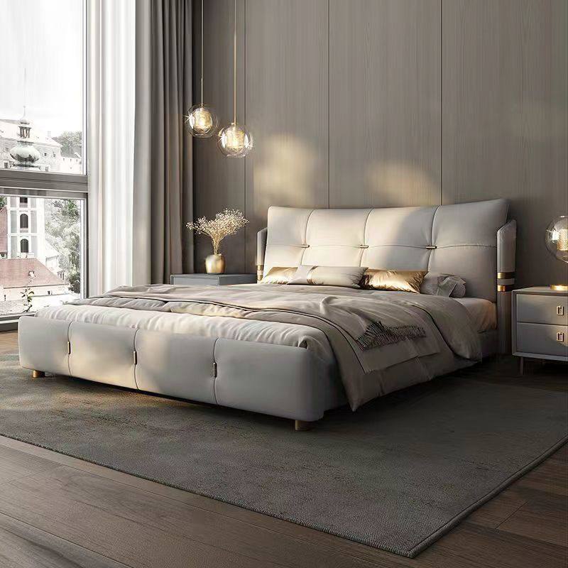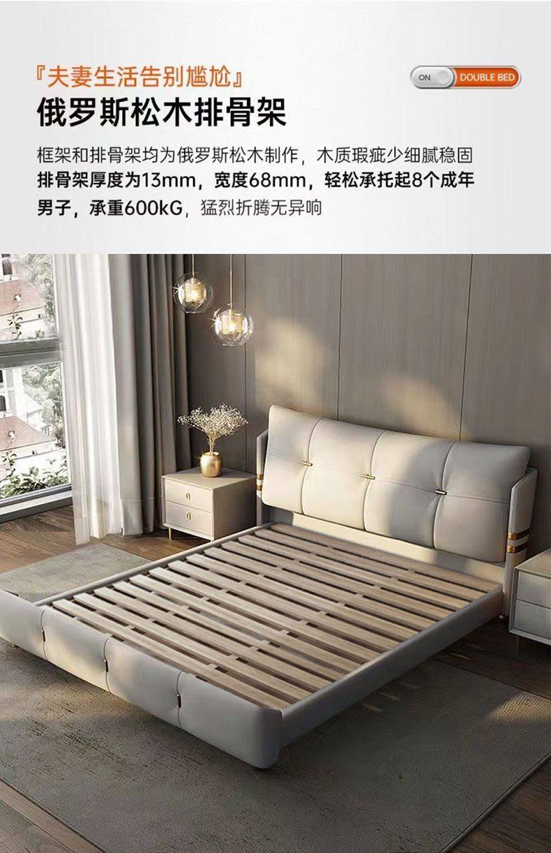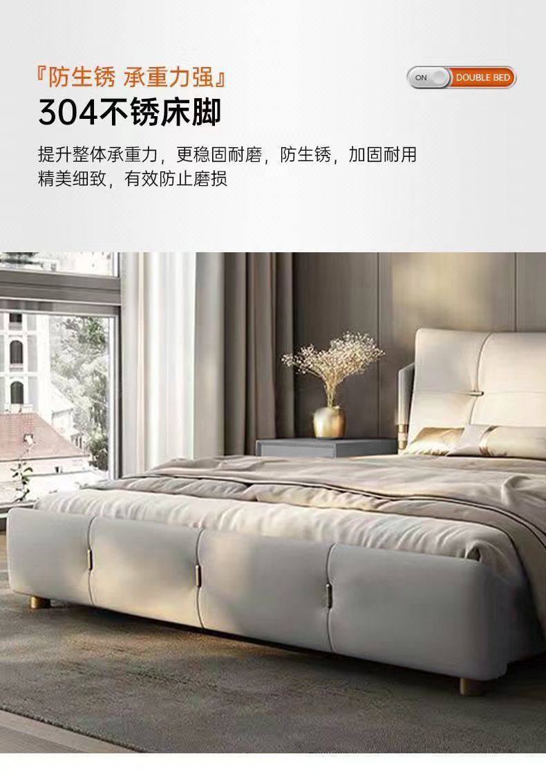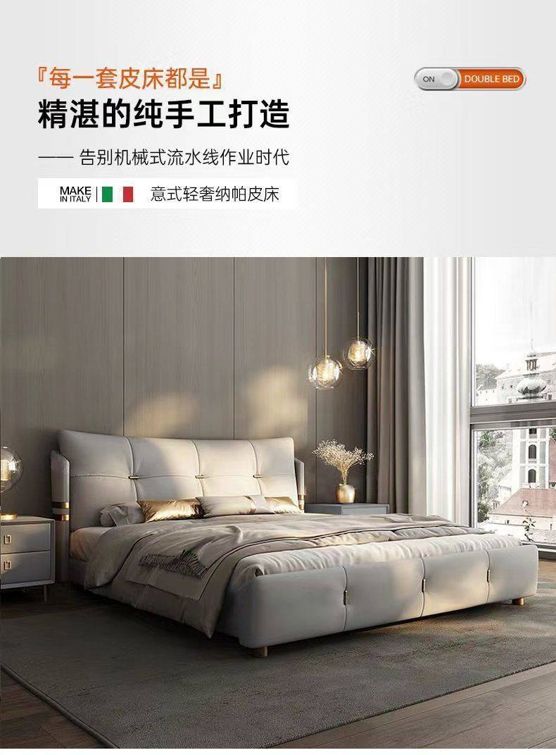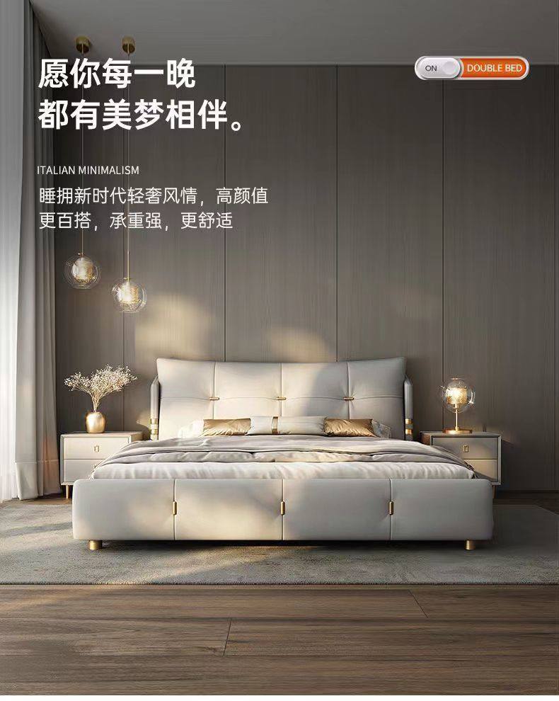2025 New Modern Simple Italian Leather Bed Light Luxury Master Bedroom Large Bed Double Multi-Functional Air Pressure Storage Wedding Bed