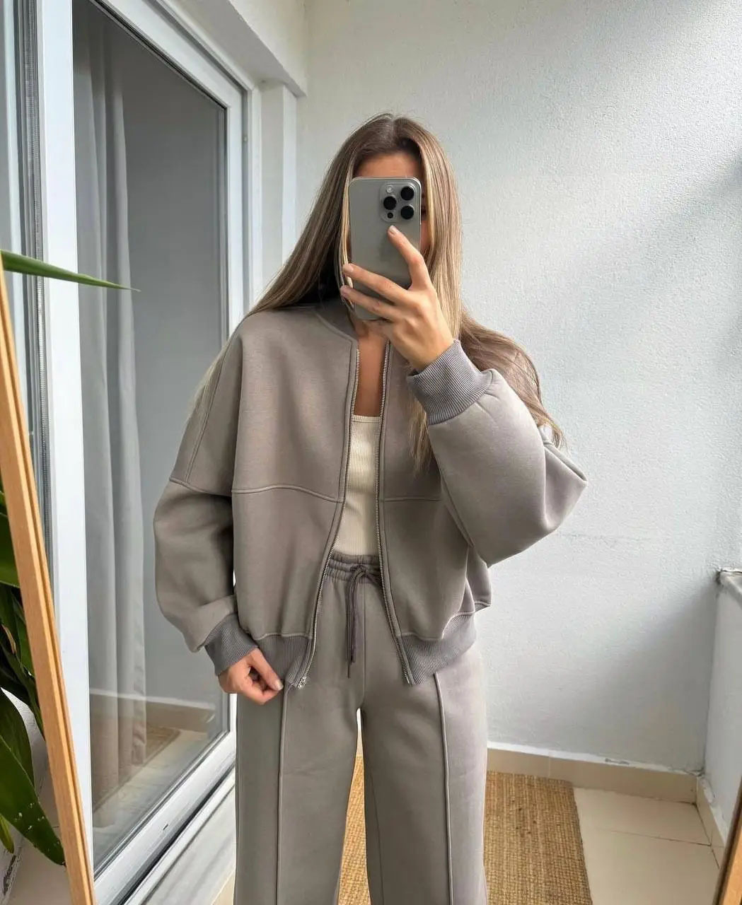 Cross-Border European and American Style Casual Suit Autumn and Winter Cardigan Sports Women's Fashion Zipper Long-Sleeved Jacket and Trousers Two-Piece Set