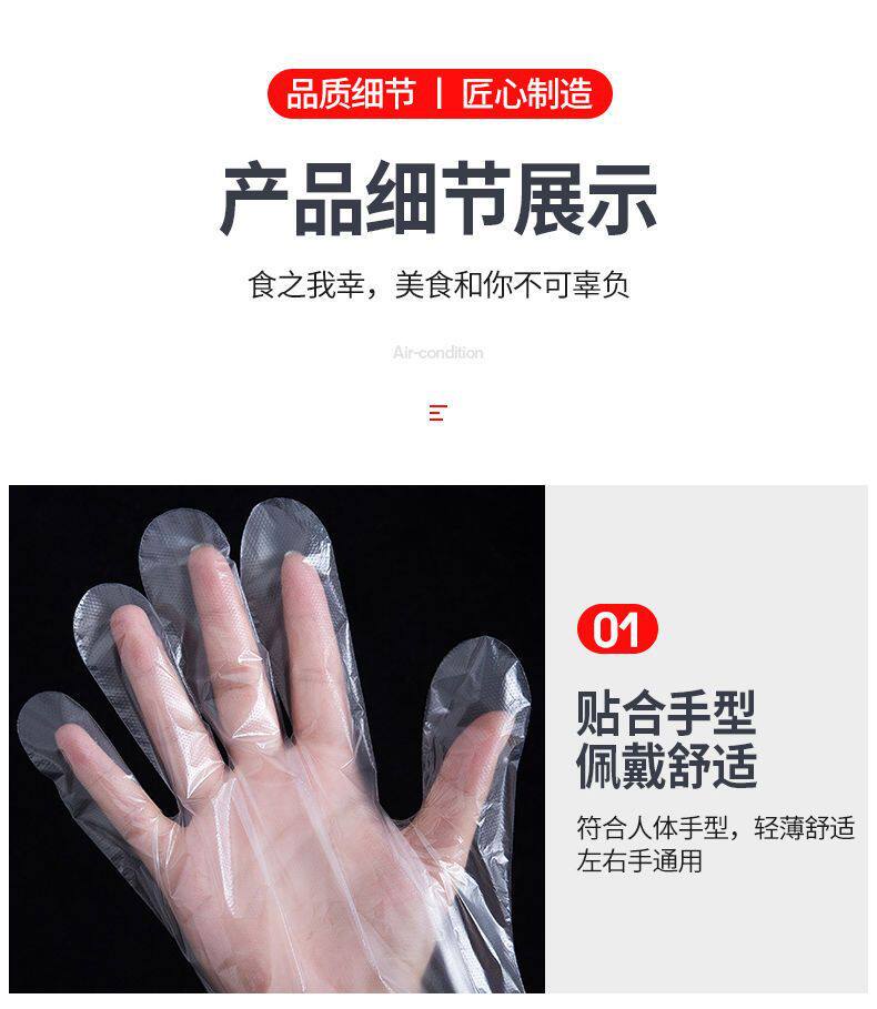 Removable Disposable Gloves Food and Catering Plastic Film Household Transparent Thickeneded Grade Durable Boxed Commercial