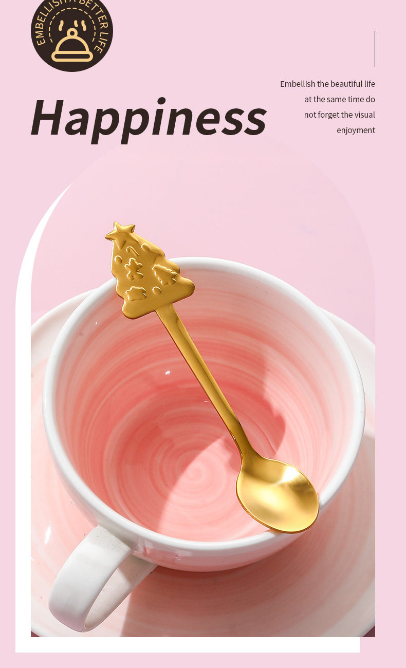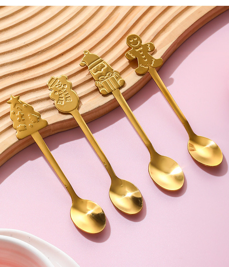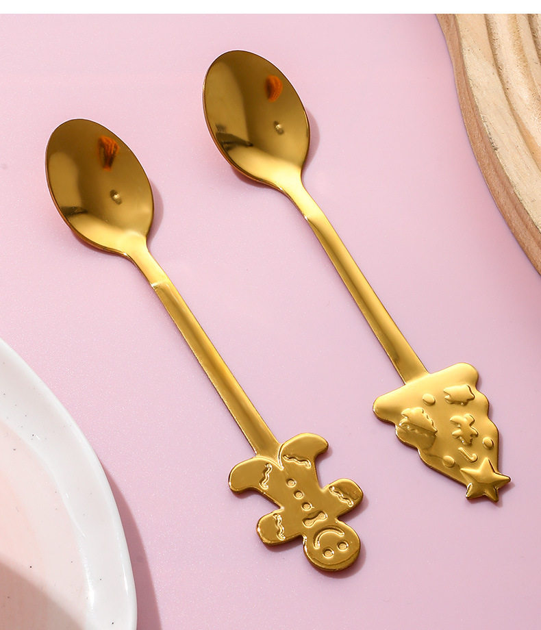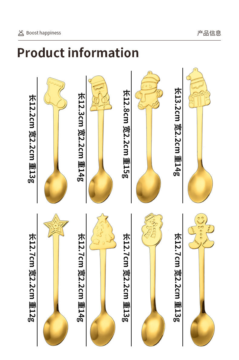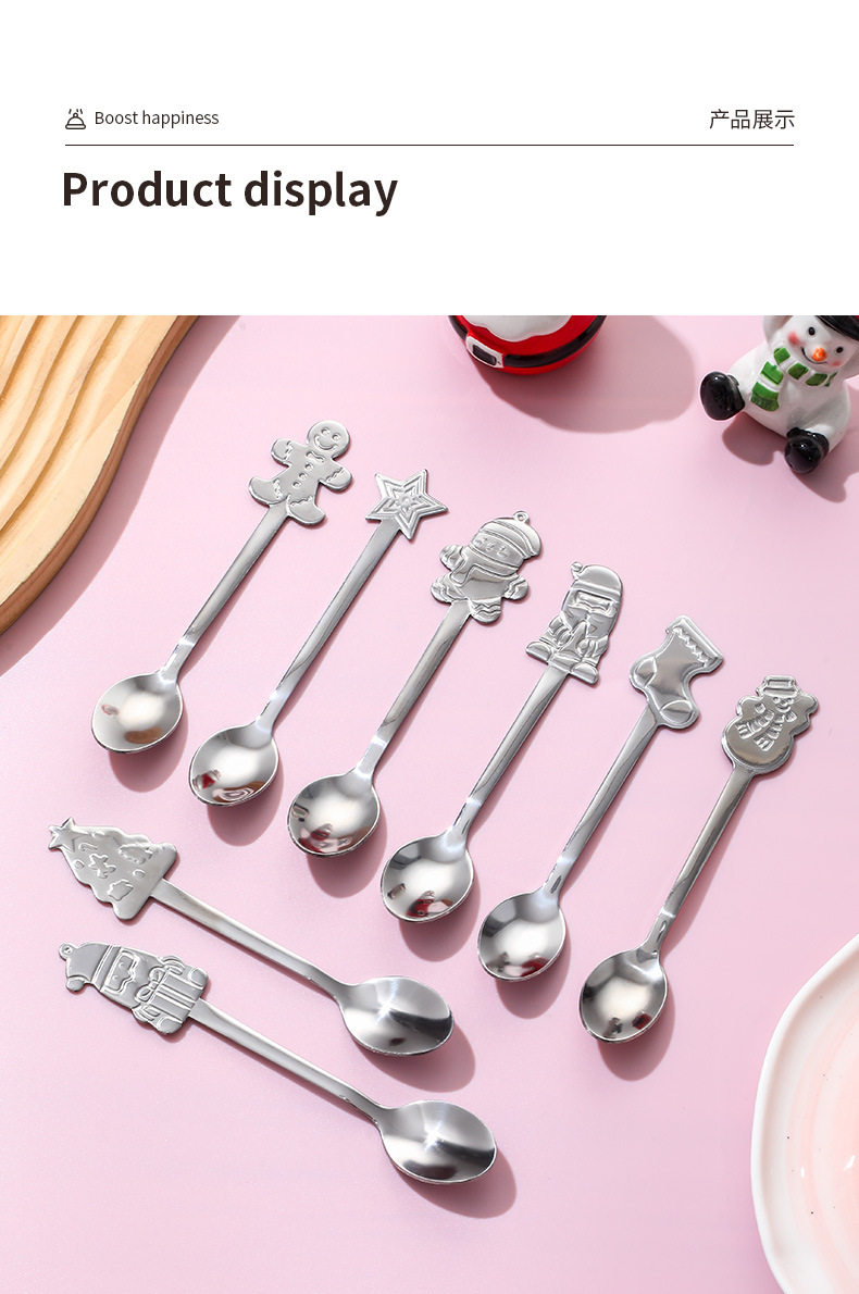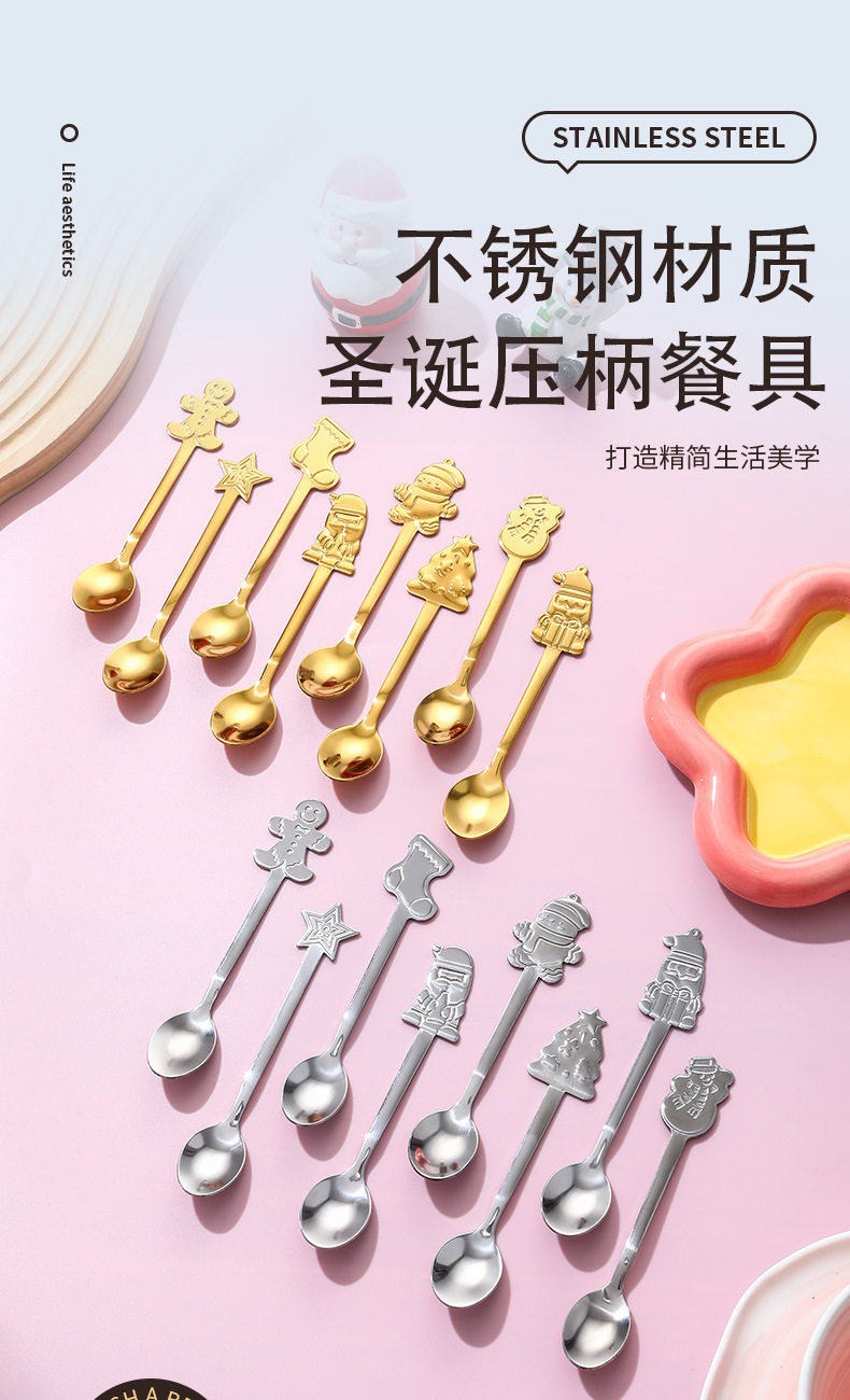 Stainless Steel Christmas Spoon Cartoon Pressed Handle Spoon Christmas Gift Gift Spoon Household Coffee Stirring Spoon Dessert Spoon